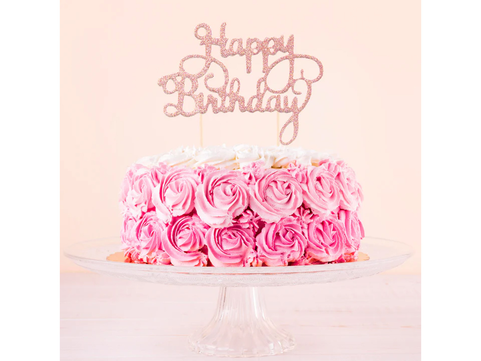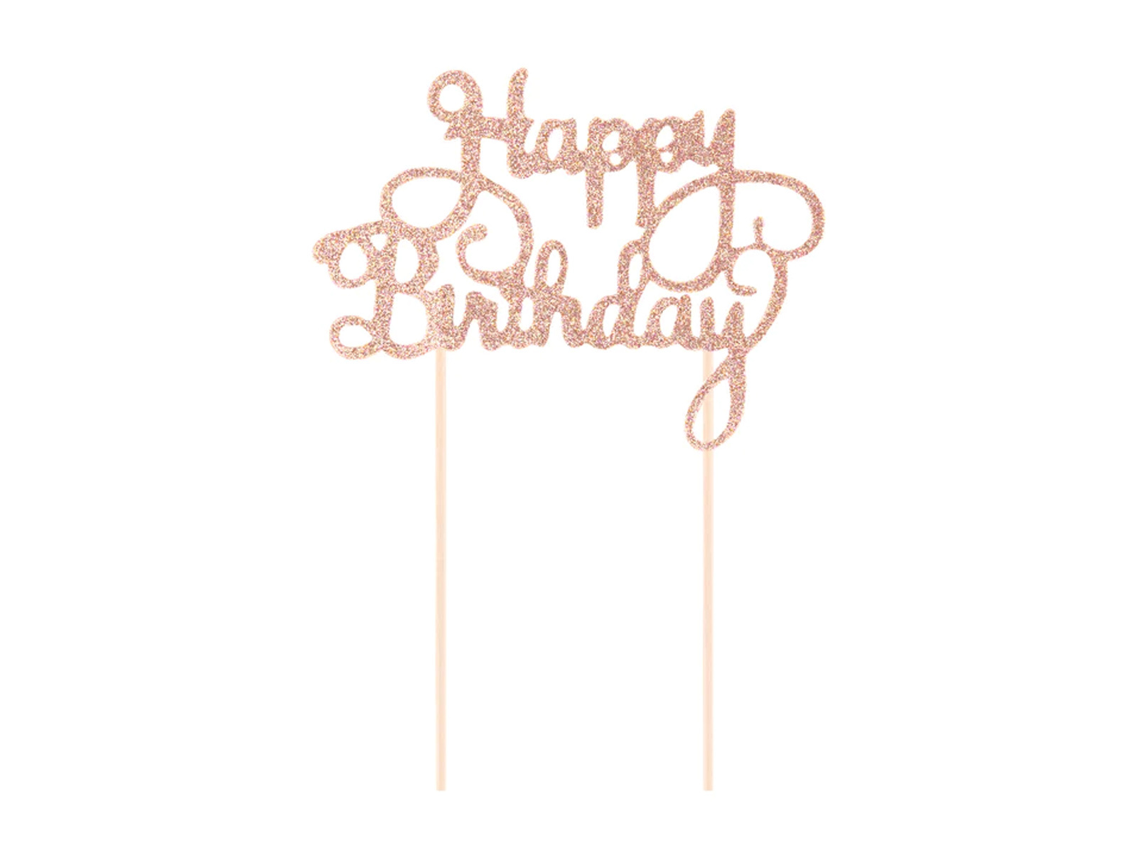 Topper na tort Happy Birthday brokatowy różowe złoto - 1 szt.