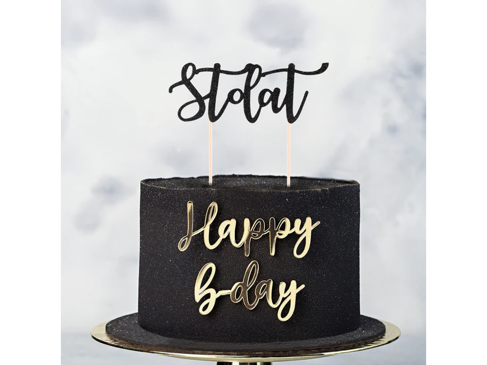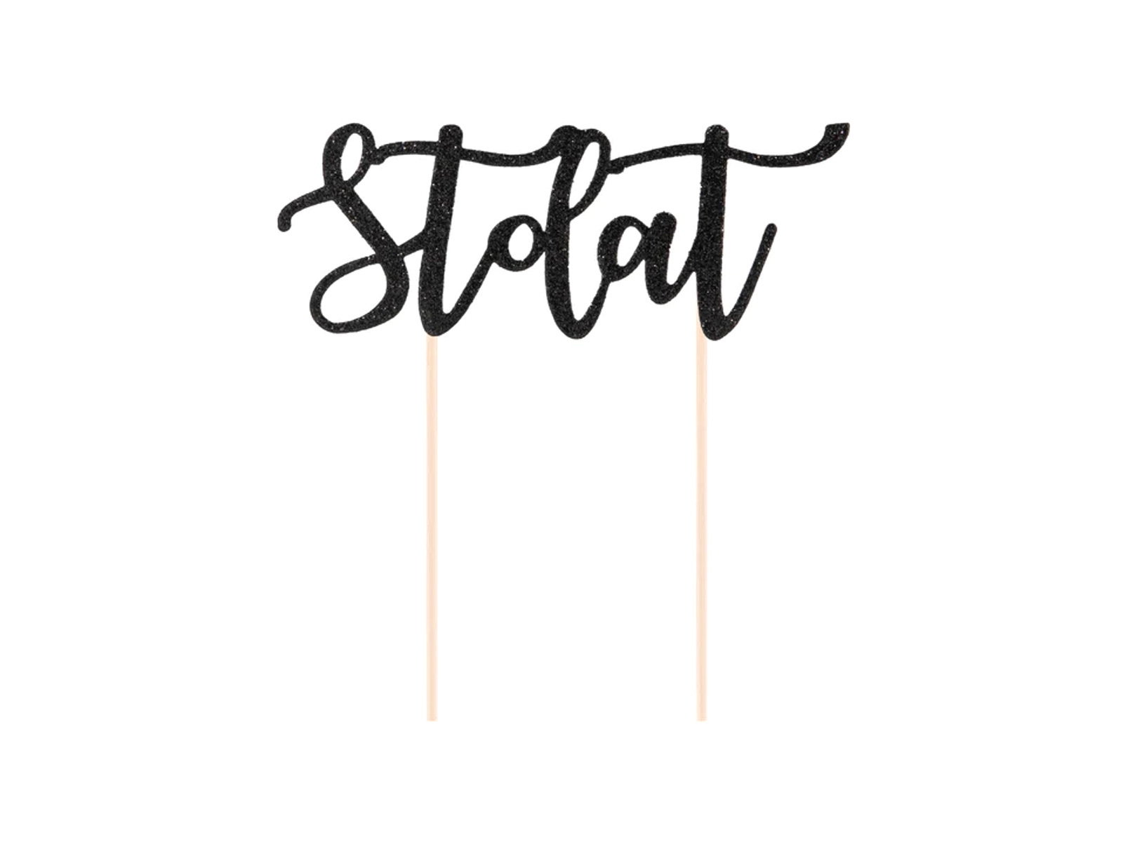 Topper na tort Sto Lat brokatowy czarny - 1 szt.