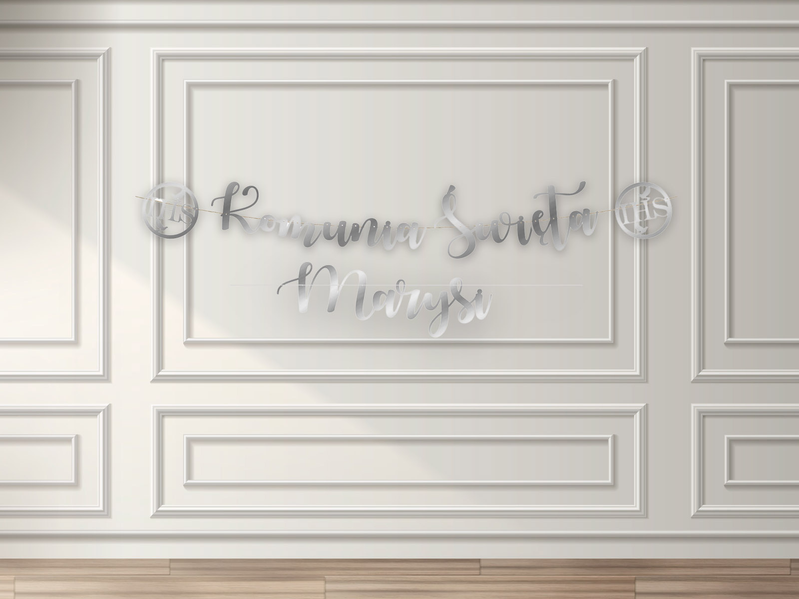 Baner srebrny Komunia Święta + imię