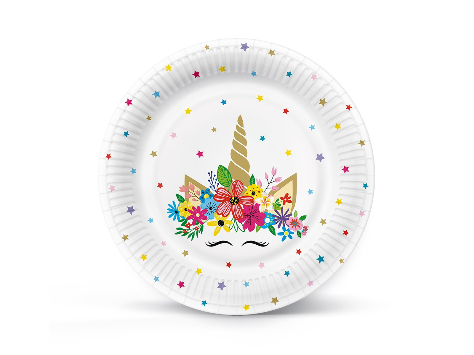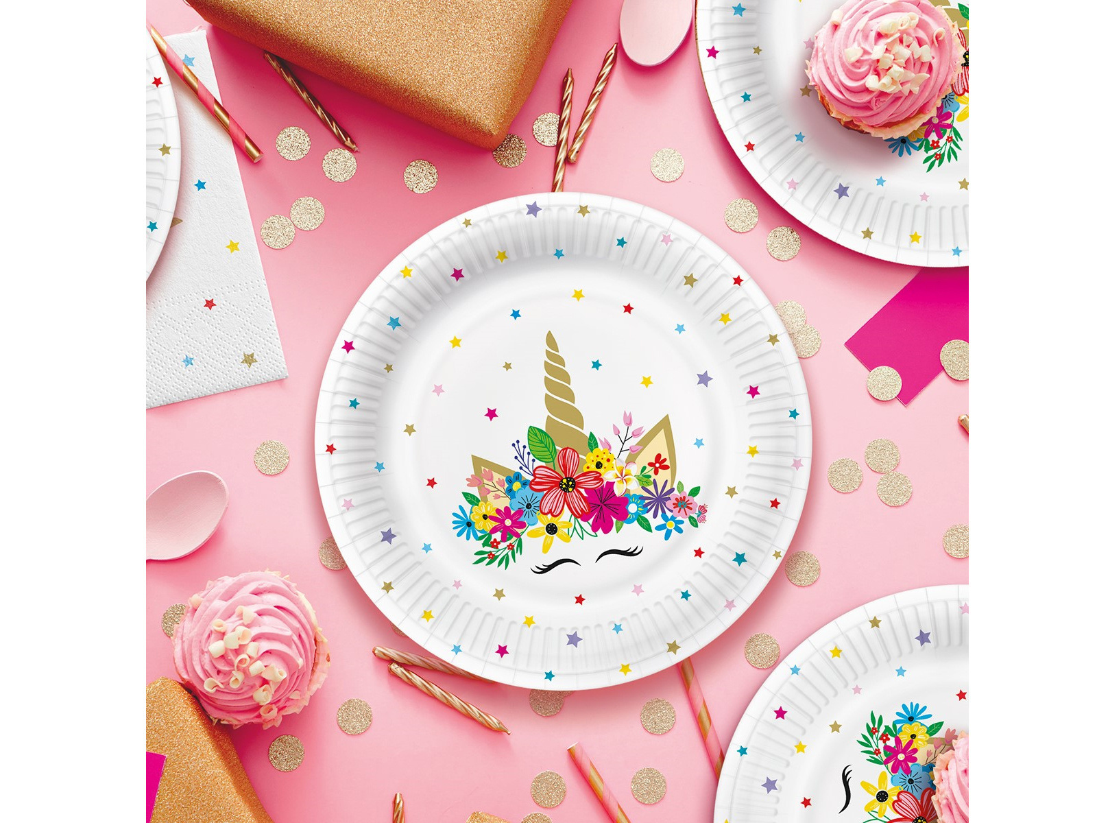 Talerzyki papierowe na urodziny Jednorożec - 23 cm - 8 szt.