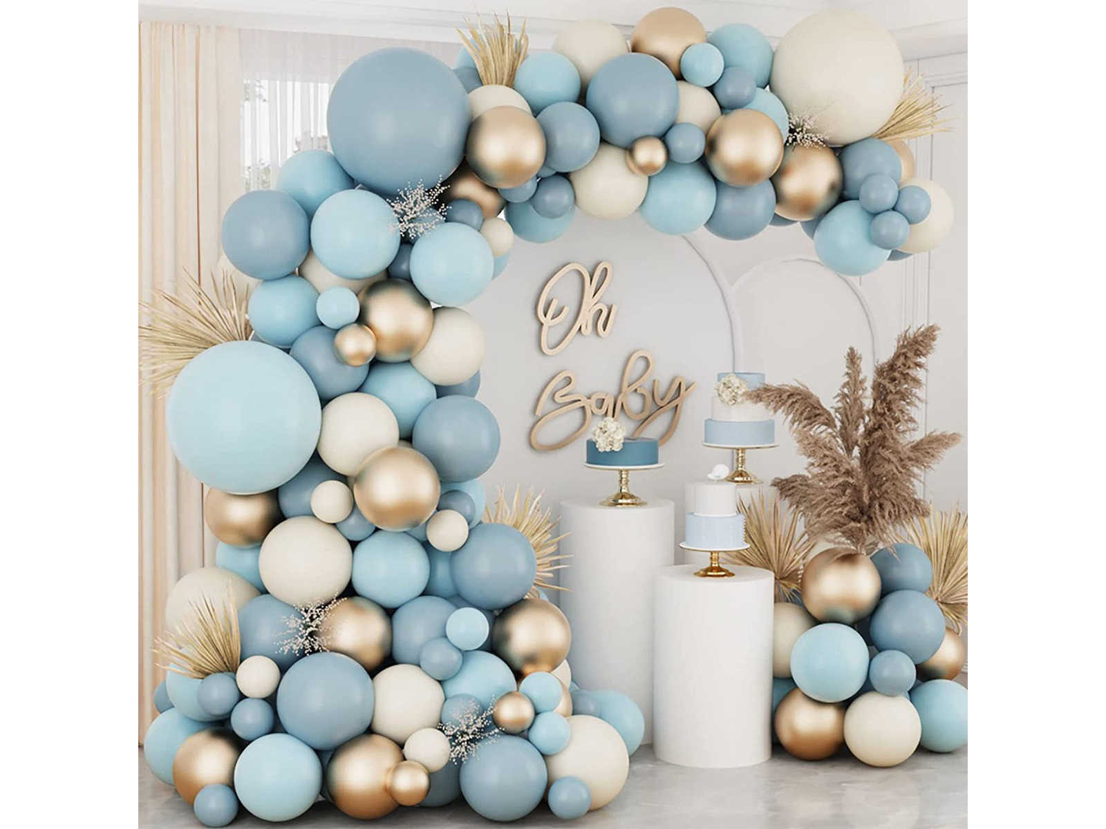 Zestaw balonów do girlandy balonowej niebiesko-kremowo-złoty - 132 szt.