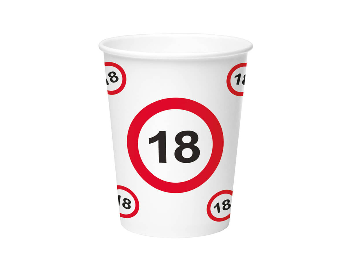 Kubeczki papierowe na urodziny Znak zakazu 18tka - 250 ml - 8 szt.