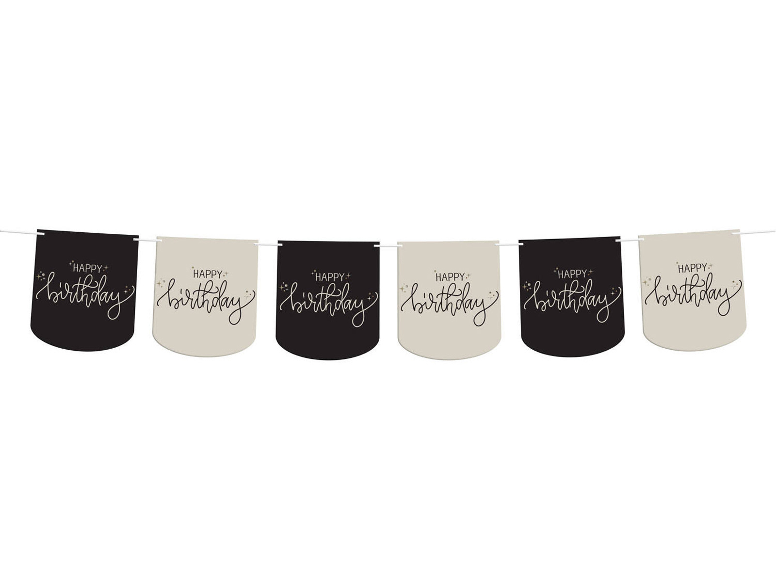Baner Happy Birthday beżowo-czarny - 600 cm - 1 szt.