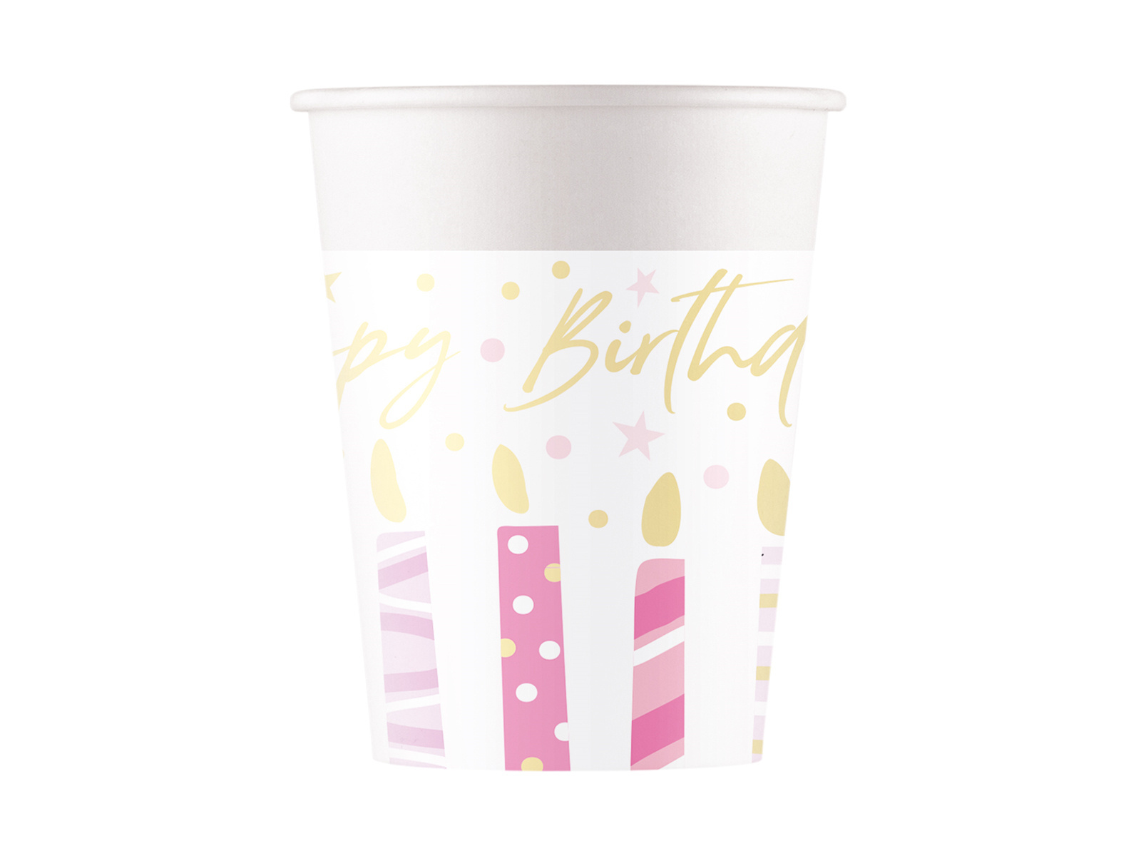 Kubeczki papierowe na urodziny Urodzinowe świeczki - 200 ml - 8 szt.