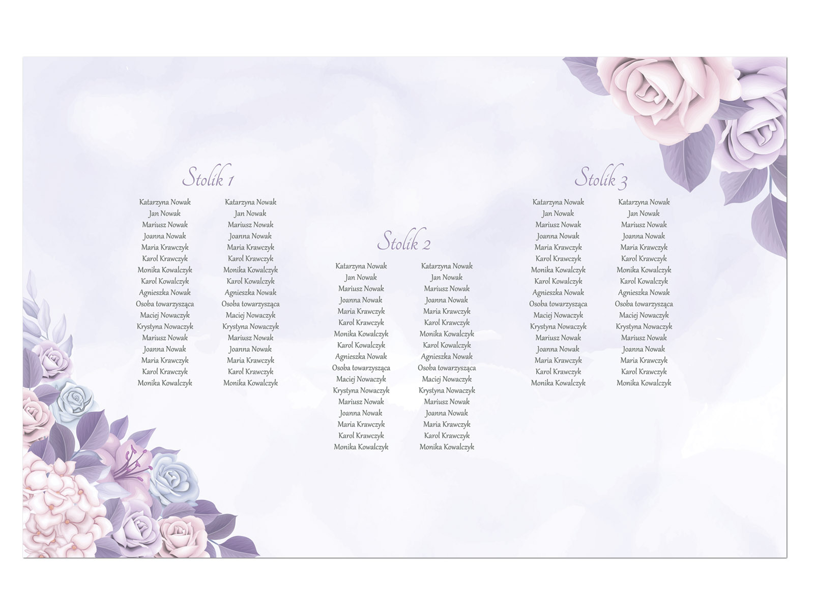 Maksymalnie na jednym plakacie można umieścić spis 5 stołów.