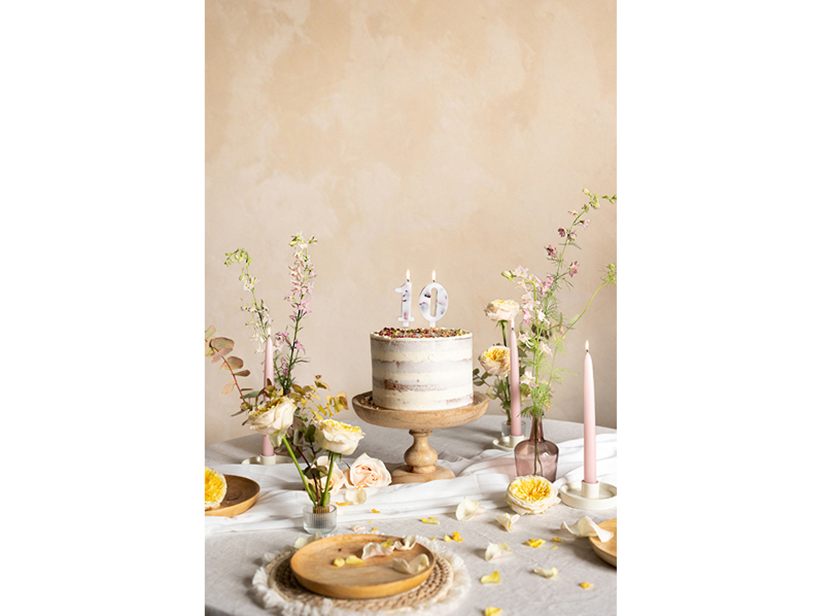 Świeczka cyferka zero z płatkami kwiatów - 0 - 1 szt.