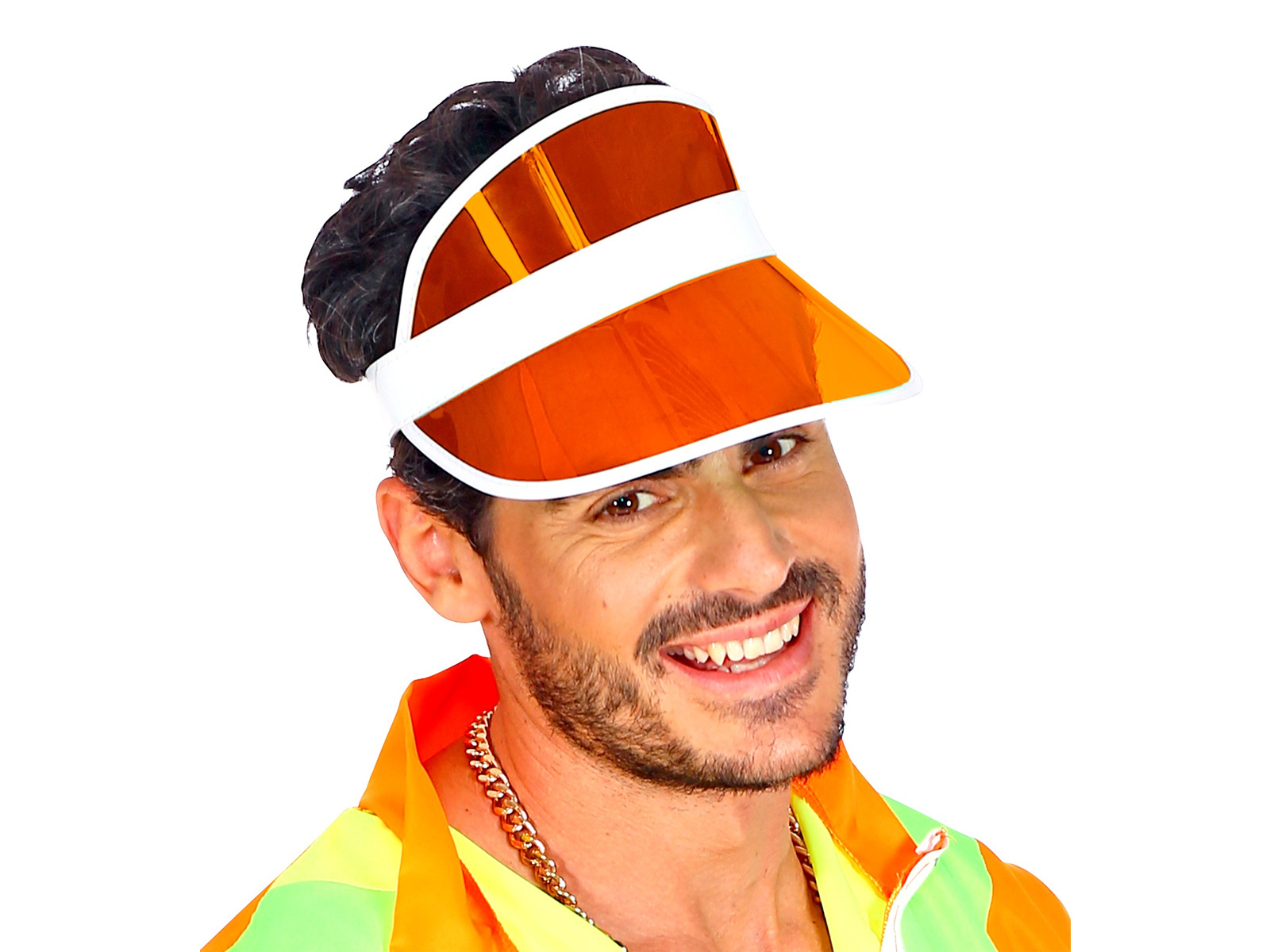 Wyróżnij się na każdej imprezie dzięki naszemu pomarańczowemu daszkowi na głowę! Ten dynamiczny dodatek jest idealny dla wszystkich entuzjastów stylu disco i lat 80-tych. Wykonany z wysokiej jakości plastiku gwarantuje wygodę i trwałość przez całą noc zabawy. Niezależnie od tego, czy planujesz stroić się na Halloween lub zabawę karnawałową, tematyczną imprezę czy po prostu chcesz dodać trochę koloru i zabawy do swojego codziennego stroju, ten daszek jest doskonałym wyborem.