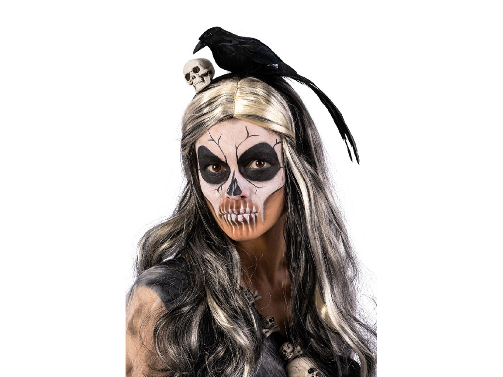 Zachwyć wszystkich na przyjęciu halloweenowym niebanalnym dodatkiem, który przyciąga uwagę! Opaska kruk i czaszka idealnie wpisuje się w mroczną atmosferę tej magicznej nocy. Wykonana z wysokiej jakości materiałów, zapewnia komfort noszenia przez całą noc zabawy. Mistyczny motyw kruka oraz czaszki dodaje każdemu strojowi tajemniczego charakteru.