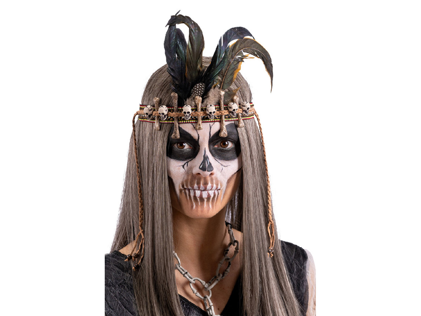 Zanurz się w mrocznej atmosferze Halloween z naszą Opaską Voodoo. Ten unikalny dodatek na głowę, dekorowany autentycznie wyglądającymi piórami i kośćmi, nada Twojemu kostiumowi niezapomniany charakter. Idealna dla każdego, kto chce wyróżnić się podczas halloweenowej zabawy czy tematycznej imprezy.