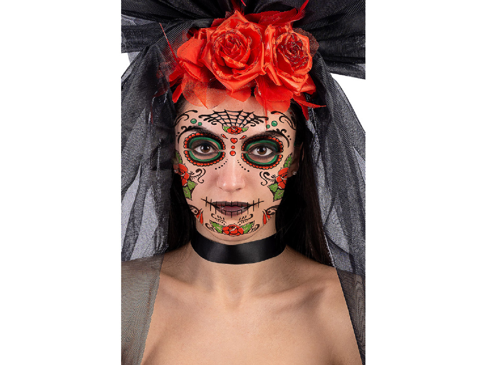 Tatuaż na twarz Meksykańska Czacha z różami - 1 szt.