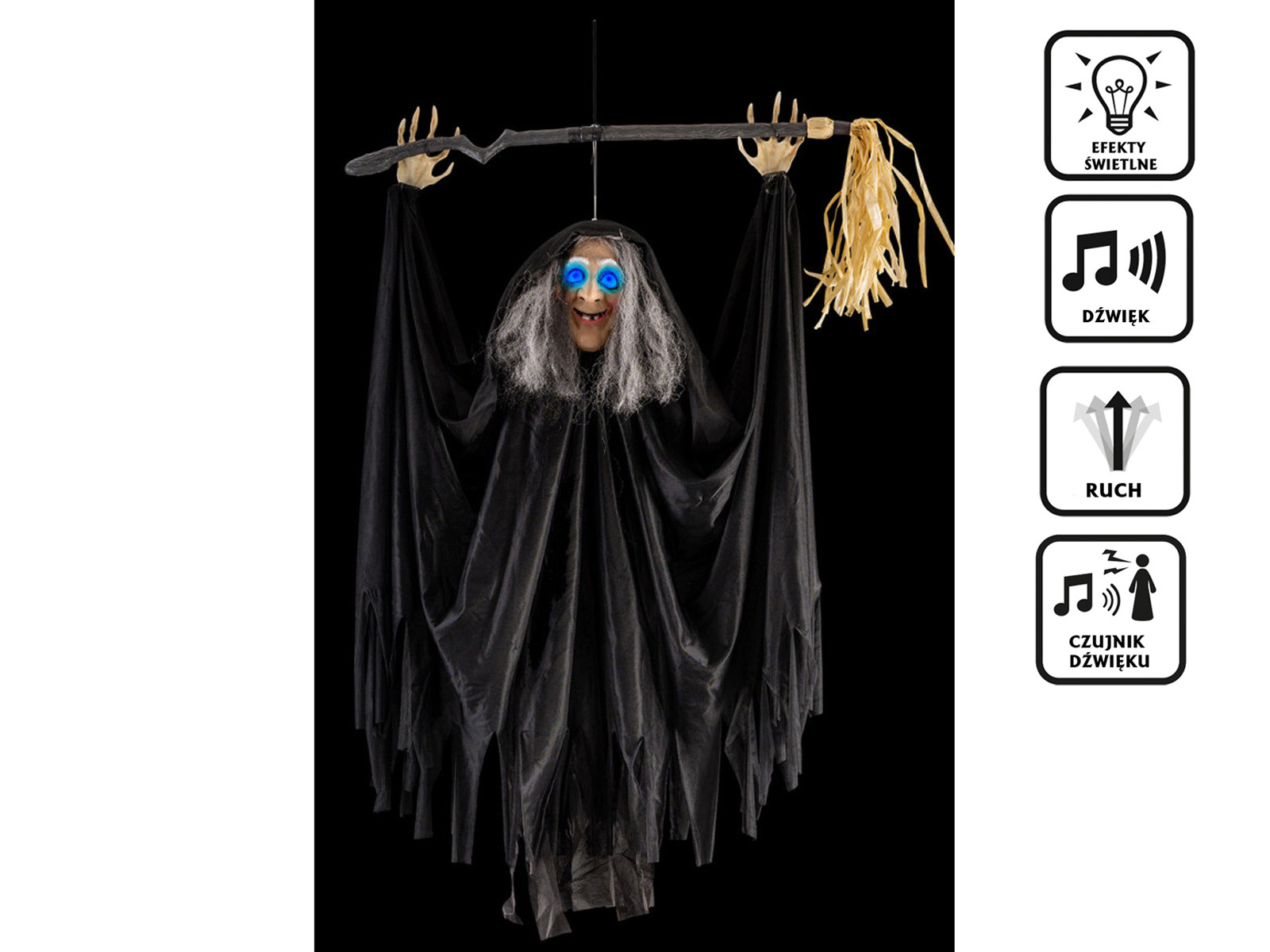 Przywołaj prawdziwie upiorny nastrój tego Halloween dzięki naszej dekoracji "Czarownica z miotłą". Zaskocz swoich gości nie tylko mistycznym wyglądem, ale i przerażającą interaktywnością. Czarownica sprawi, że każdy poczuje dreszcz emocji przemykający przez kręgosłup!