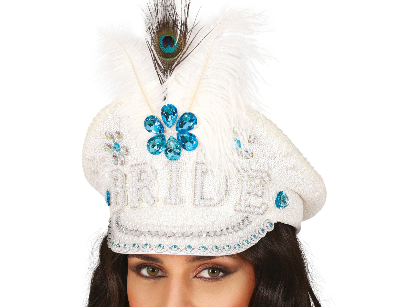 Czapka z kryształkami i piórami Bride - 1 szt.