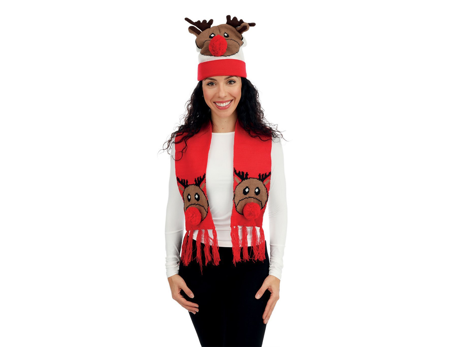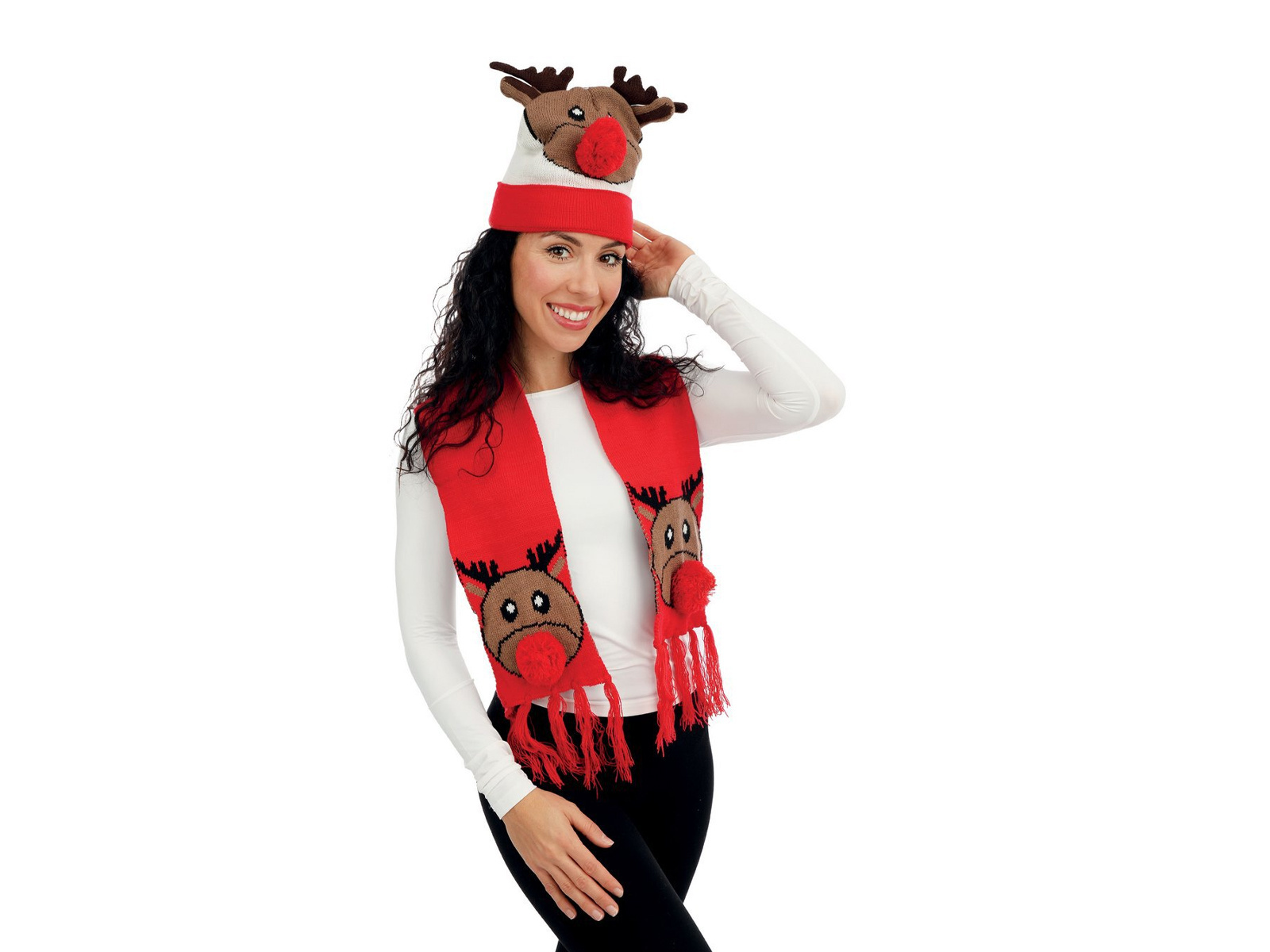 Przygotuj się na świąteczną atmosferę z naszym uroczym Kompletem czapka + szalik Renifer! Idealny dodatek na zimowe dni i specjalne okazje takie jak świąteczne przyjęcia. Wzór z sympatycznym reniferem i charakterystycznym czerwonym nosek dodaje uroku i świątecznej magii każdej stylizacji.
