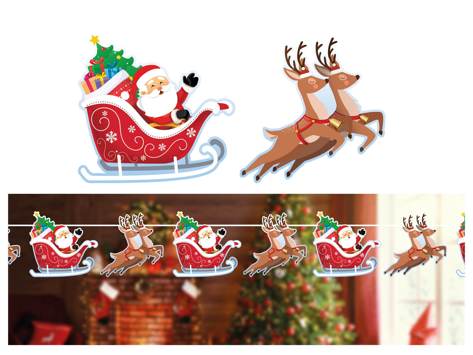 Girlanda świąteczna Sanie Mikołaja - 300 cm - 1 szt.