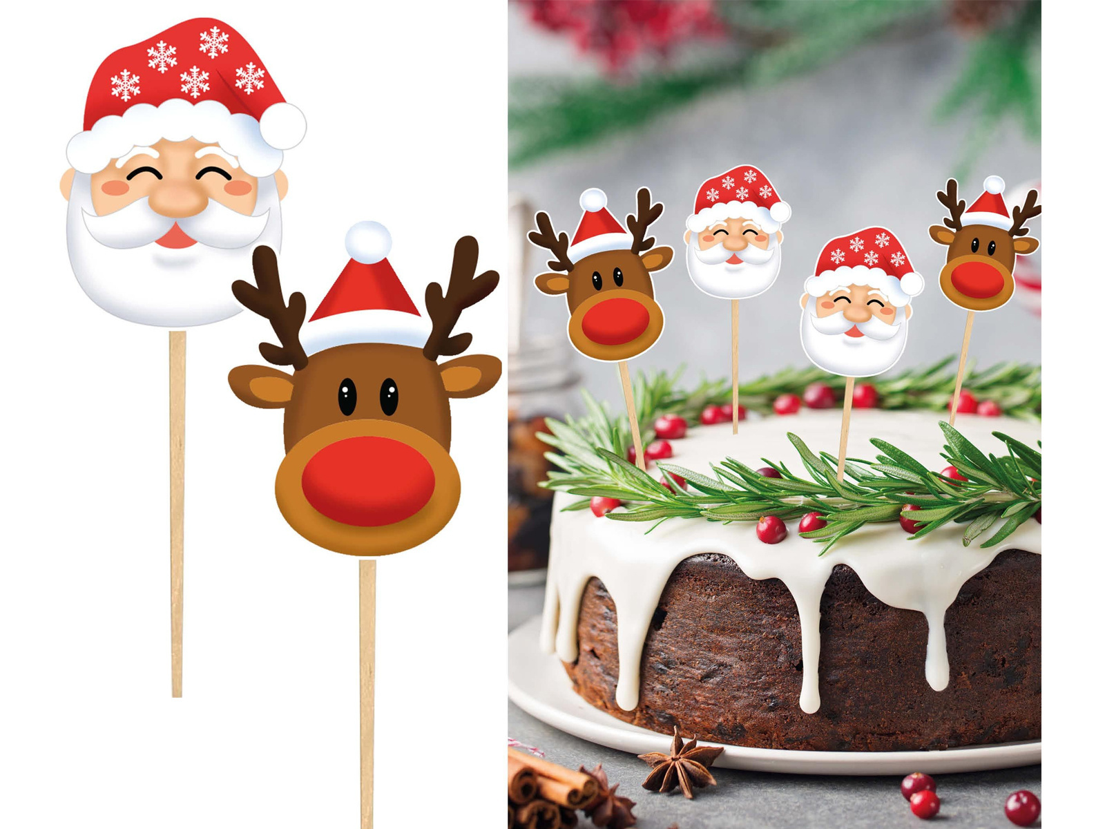 Pikery świąteczne Mikołaj i Renifer na Boże Narodzenie - 12 szt.