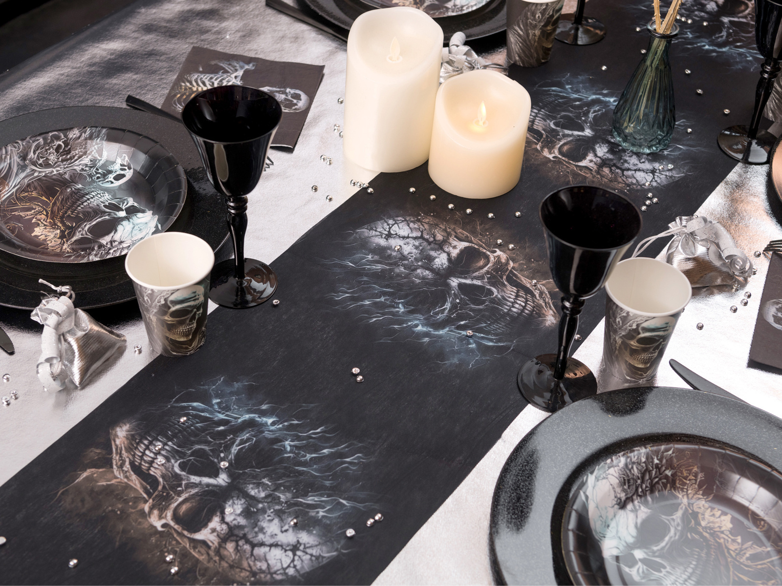 Bieżnik można również używać w różnych konfiguracjach – jako centralny element na stole, obramowanie dla innych dekoracji czy nawet jako element dekoracyjny poza stołem. Jego uniwersalność i efektowny design sprawiają, że jest to must-have każdej halloweenowej dekoracji!