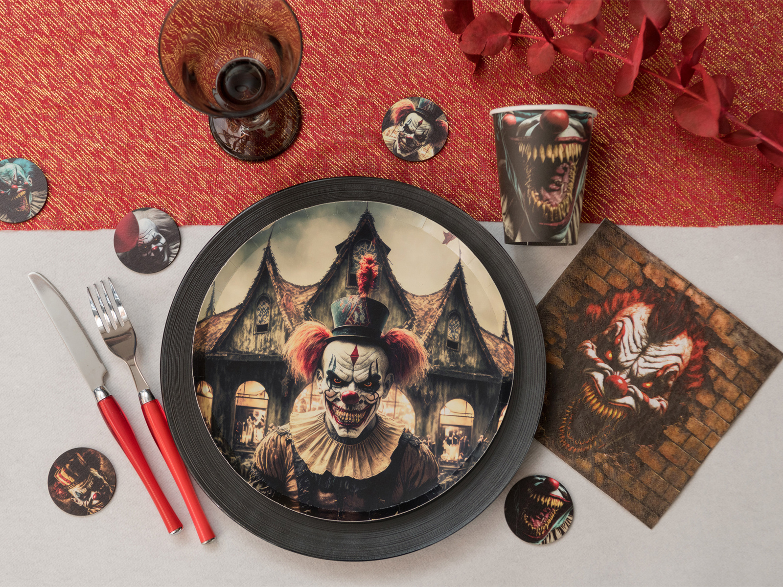 Talerzyki Klaun Zabójca na Halloween - 22,5 cm - 10 szt.