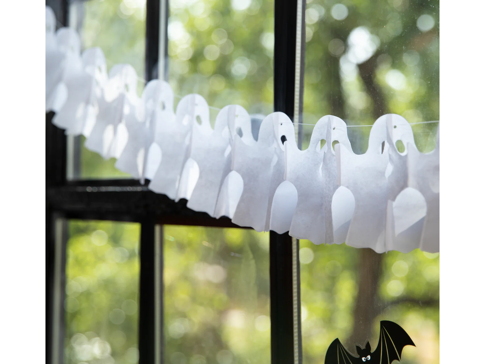 Udekoruj swoją przestrzeń na Halloween przy pomocy naszej Girlandy Duchy. Delikatna, papierowa girlanda w kolorze czystej bieli doda nastroju każdej halloweenowej dekoracji. Ożyw swoje przyjęcie lub dom dzięki tym zabawnym duszkom, które z pewnością przyciągną uwagę gości.