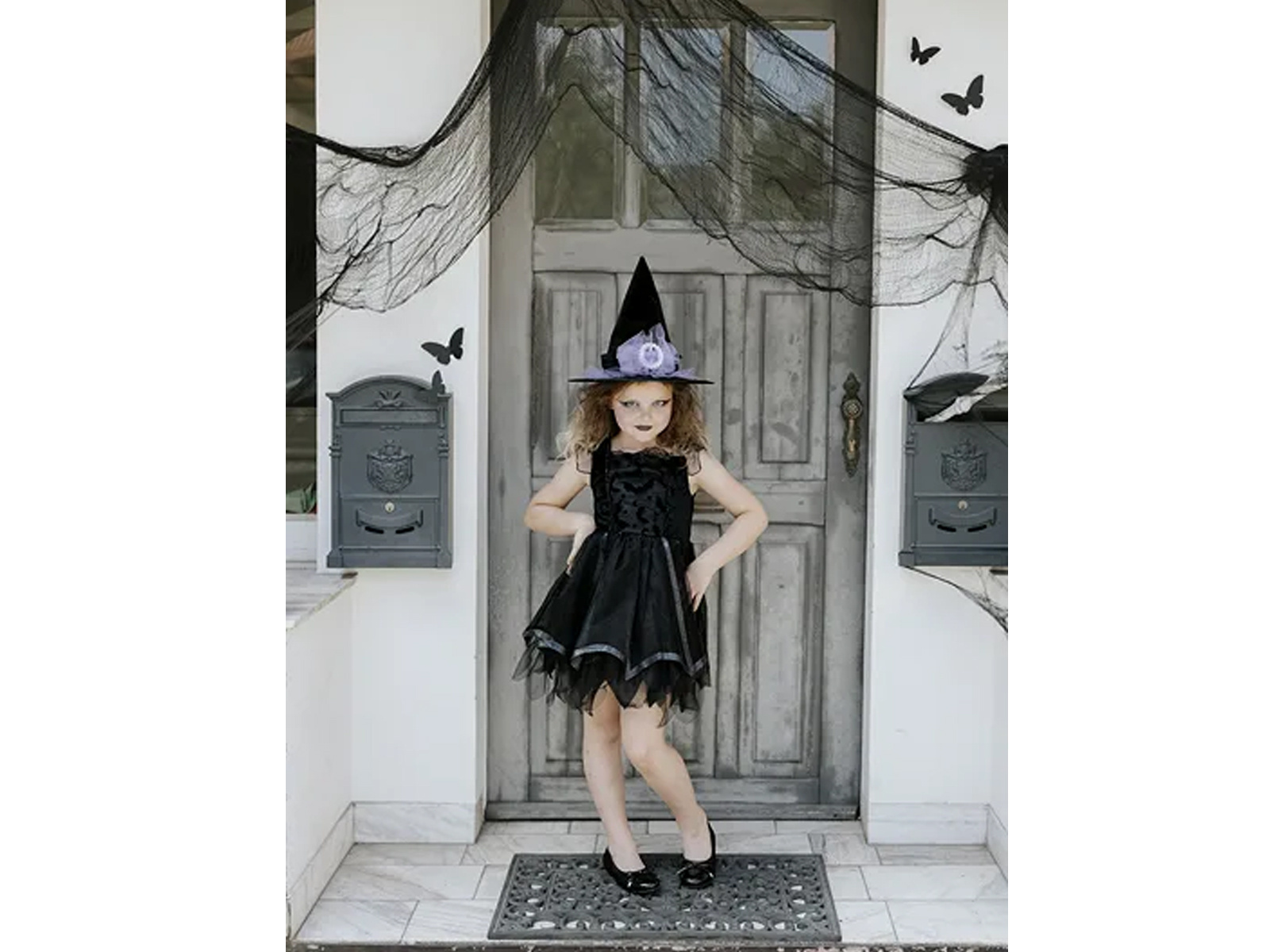 Odkryj magię Halloween lub Andrzejek z Kapeluszem Czarownicy z Kokardą. To eleganckie nakrycie głowy w kolorze czarnym, ozdobione fioletową kokardą i stylową klamrą, to idealny element, aby dodać charakteru Twojemu strojowi czarownicy. Kapelusz ma średnicę około 35 cm i wysokość 29 cm, co pozwoli Ci wyróżnić się na każdej przebieranej imprezie. Otwór na głowę o średnicy 17 cm zapewnia komfort noszenia przez cały wieczór. Niezależnie od tego, czy planujesz uczestniczyć w halloweenowej zabawie, czy andrzejkowym wróżeniu, ten kapelusz czarodziejsko uzupełni Twój kostium.