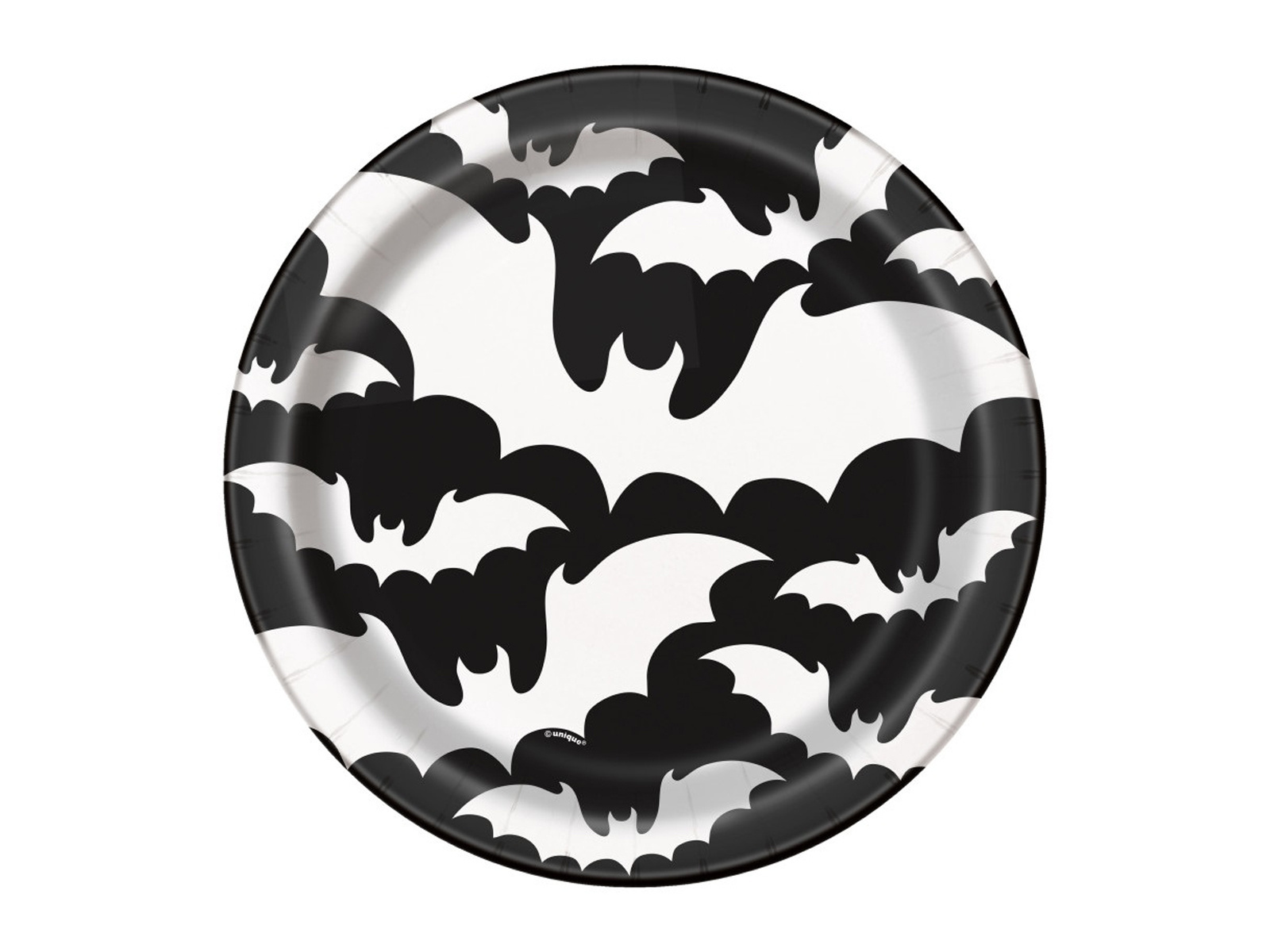 Talerzyki papierowe na Halloween Nietoperze - 23 cm - 8 szt.