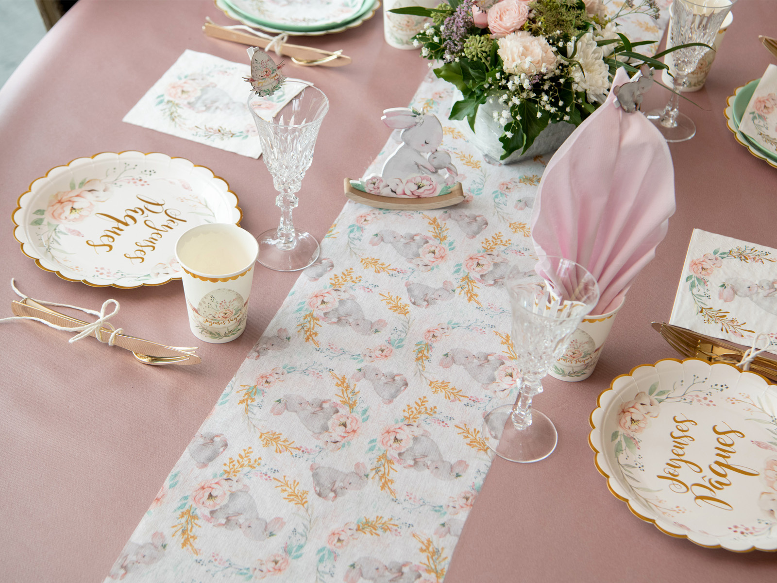 Dekoracja bieżnik na stół Zajączki - 25 cm x 3 m - 1 szt.
