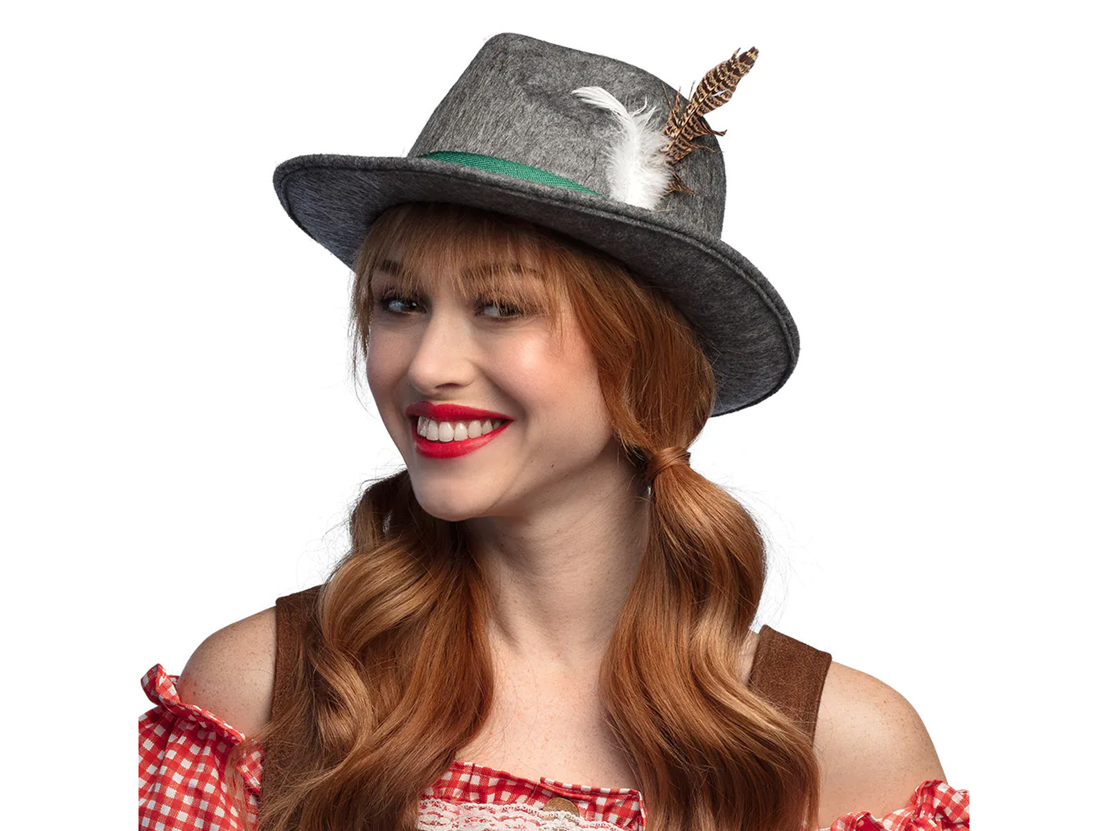 Przenieś się w serce Bawarii z naszym stylowym Kapeluszem Tyrolskim! Idealny na Oktoberfest lub inne tematyczne uroczystości, ten szary kapelusz z eleganckimi piórkami dodaje autentycznego ducha bawarskich festiwali do Twojego stroju.