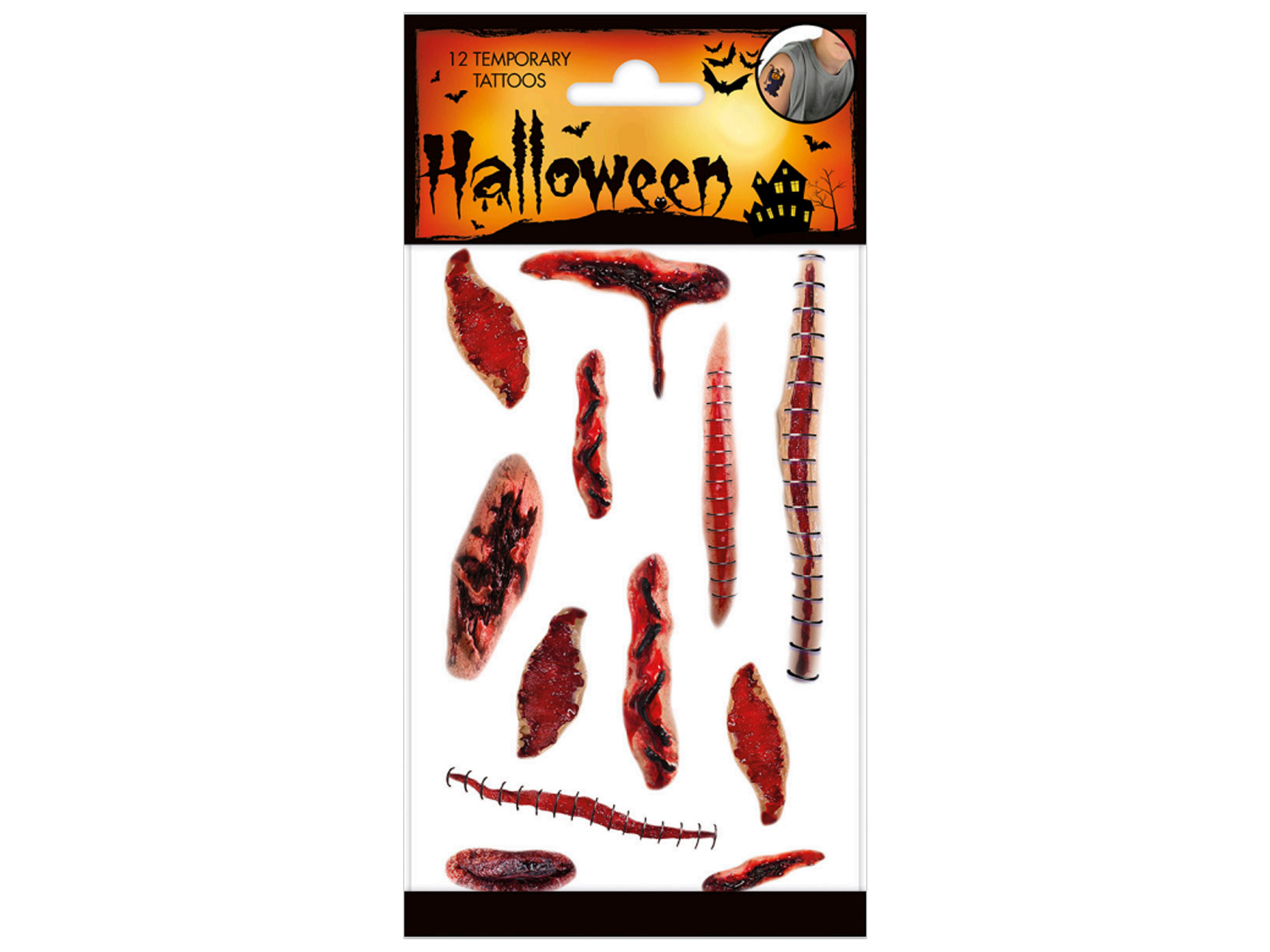 Tatuaże zmywalne Blizny na Halloween - 12 szt.
