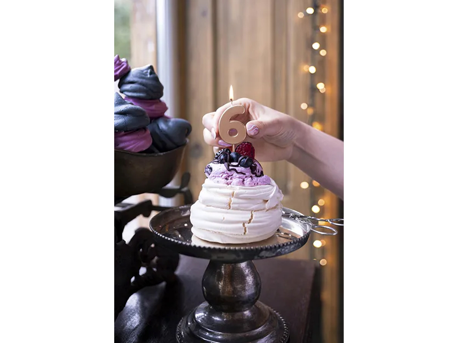 Świeczka cyferka sześć różowe złoto - 6 - 1 szt.