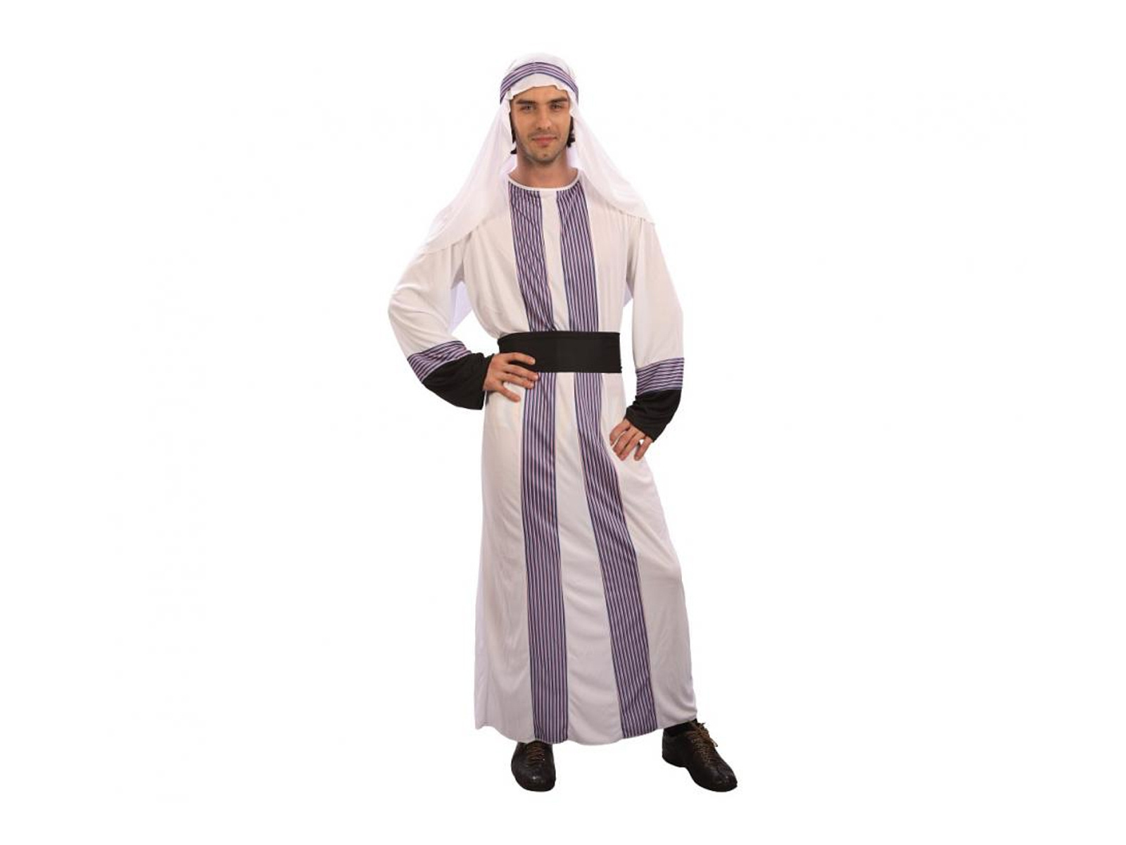 W skład zestawu wchodzą: długa szata, która zapewni komfort i swobodę ruchów, pasek podkreślający talię oraz stylowe nakrycie głowy dodające autentyzmu. Całość uszyta jest z wysokiej jakości poliestru, zapewniając trwałość i wygodę noszenia.