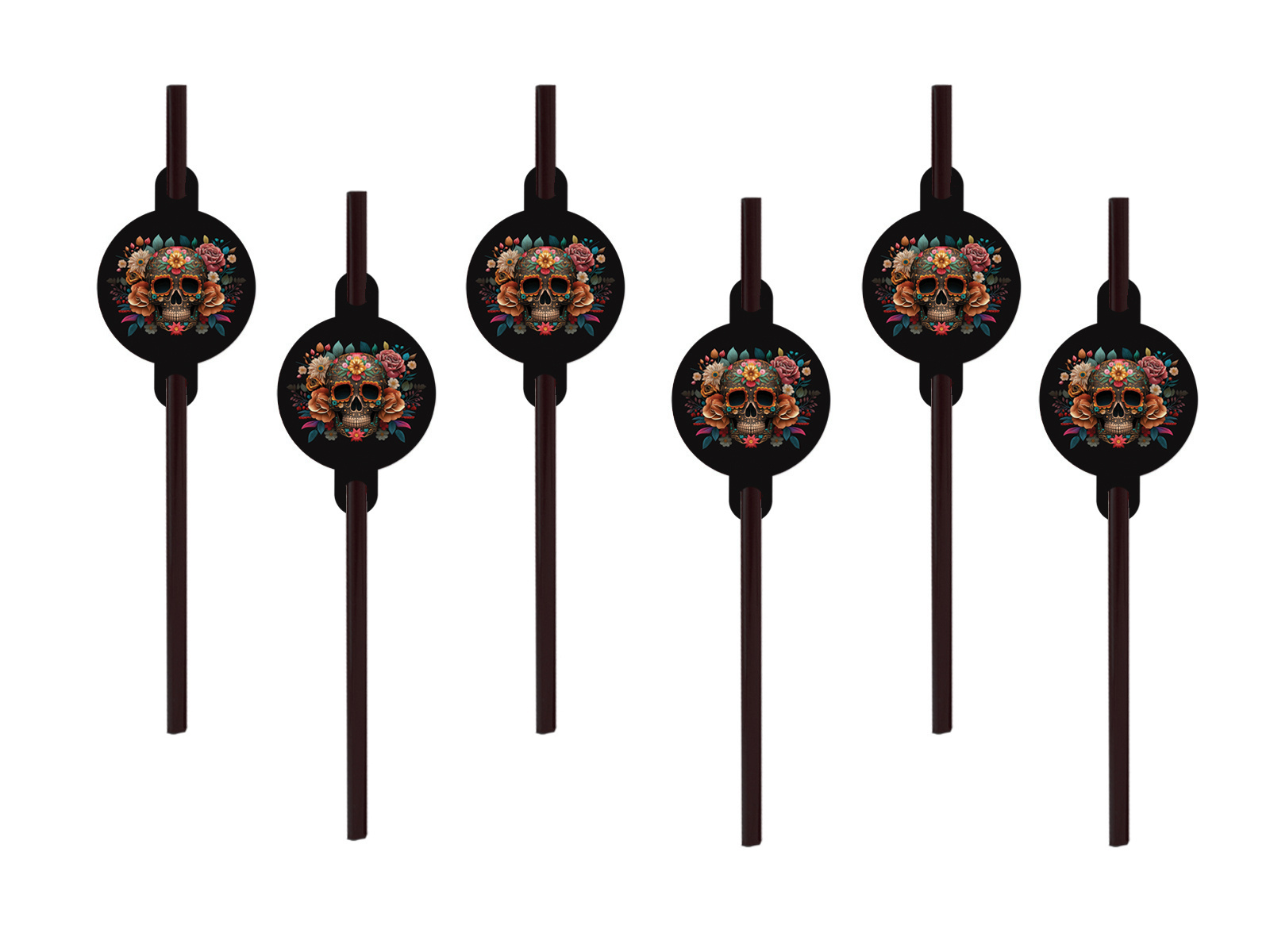 Słomki Dia De Los Muertos - 6 szt. - Słomki proste w pełni biodegradowalne i ekologiczne. Długość: 20 cm.