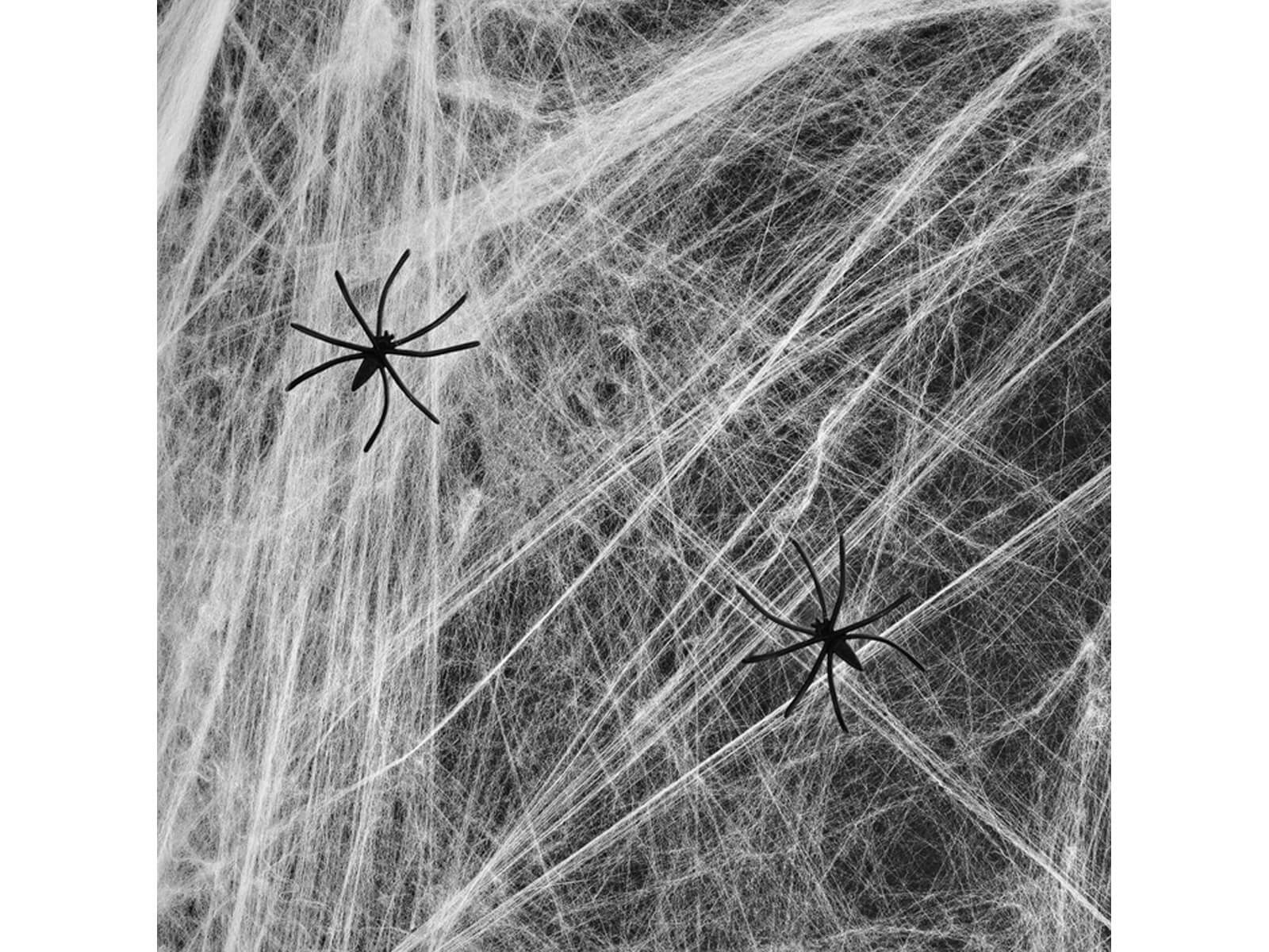 Biała pajęczyna z pająkami na Halloween - 20 g - 1 op. - Biała pajęczyna z dwoma czarnymi pająkami.