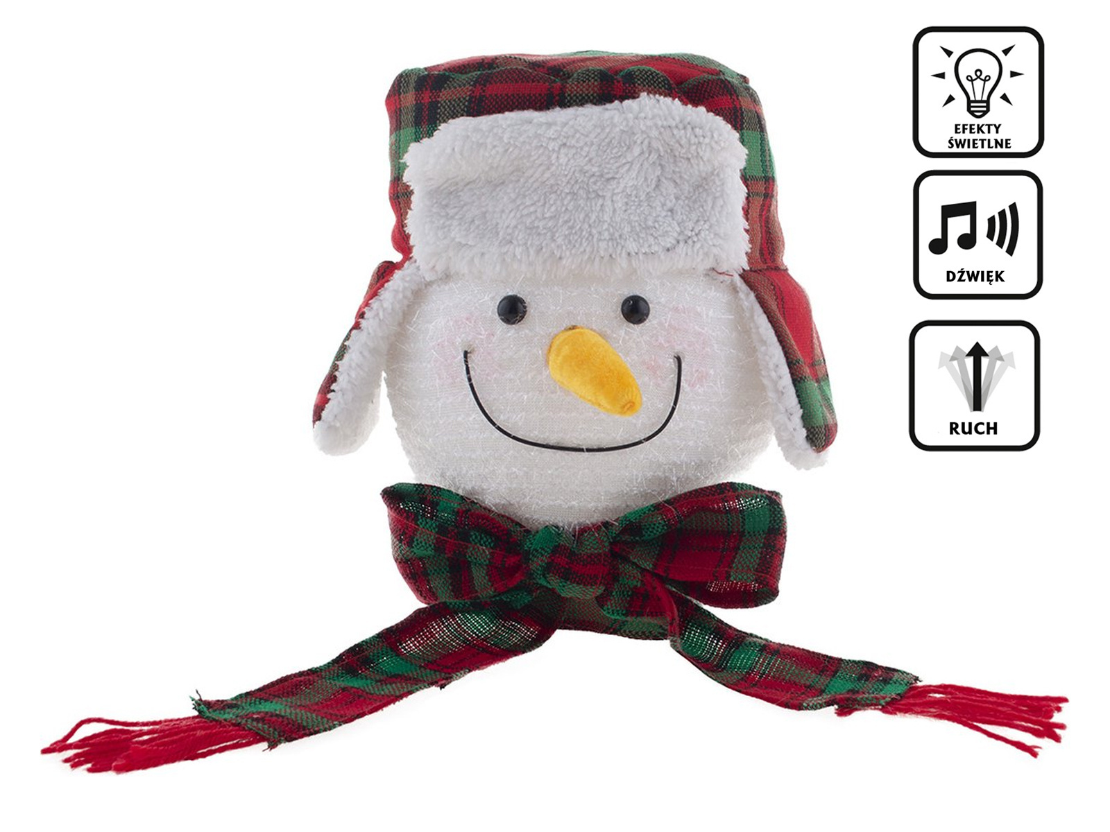 Prezentujemy Dekorację Stojącą Głowę Bałwanka w Czapce, która przyniesie magiczną atmosferę świąt Bożego Narodzenia do Twojego domu! Ten uroczy bałwan jest nie tylko ciekawie zaprojektowany, ale także interaktywny. Wykonuje on ruchy głową, świeci, a z wnętrza wydobywają się dźwięki świątecznych piosenek, tworząc wyjątkowy nastrój podczas zimowych wieczorów.