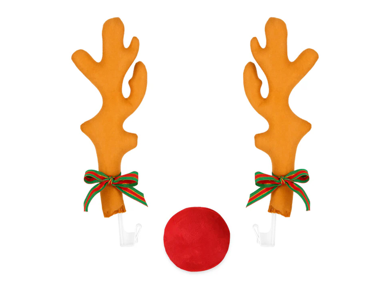 Dekoracja na samochód Rogi i nos renifera jasnobrązowe - 1 kpl.