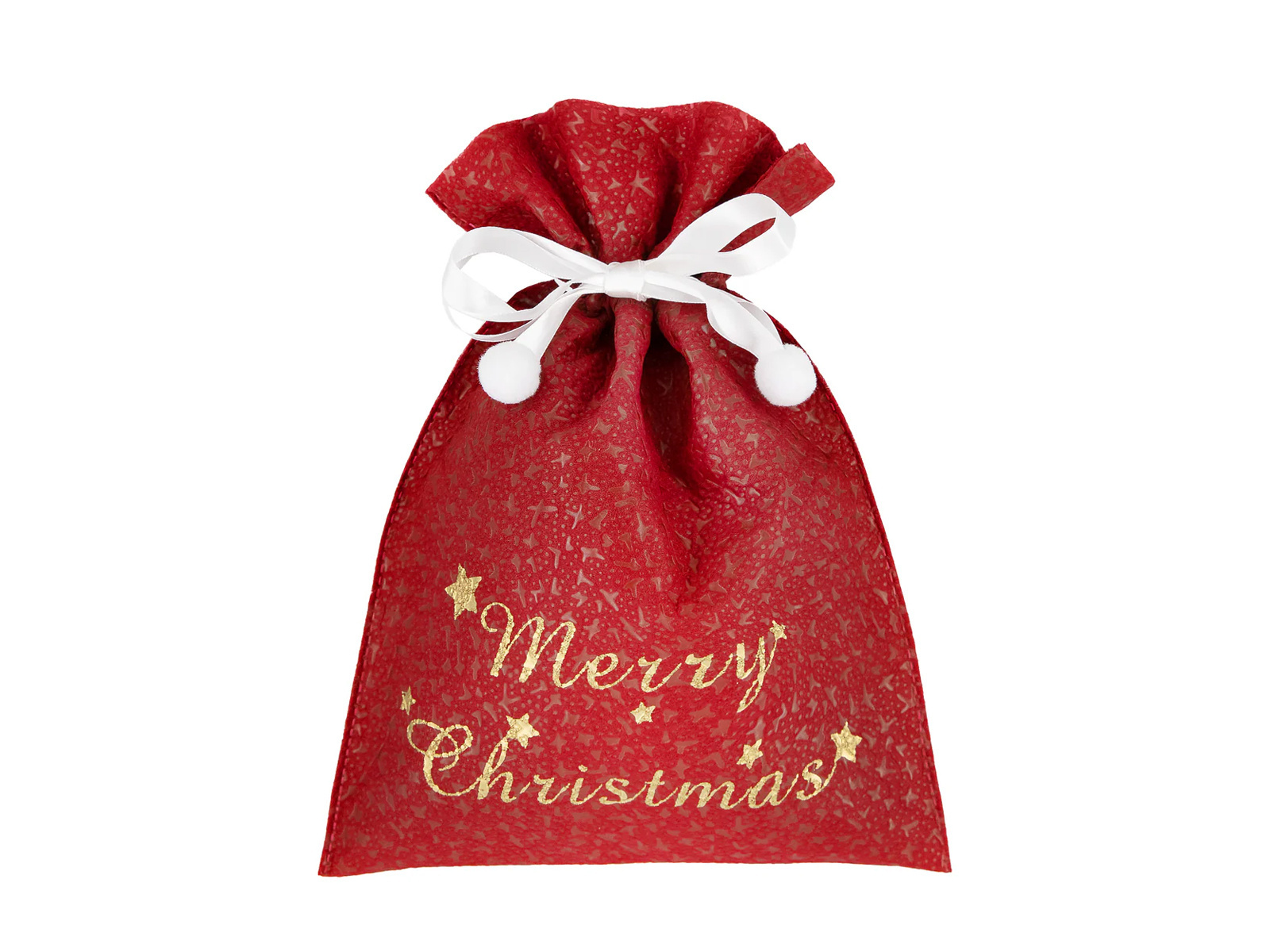 Ten elegancki i praktyczny worek o wymiarach 23 cm szerokości na 33 cm wysokości jest idealny do pakowania wszelkich świątecznych prezentów. Dzięki wszytej tasiemce w kolorze białym, zakończonej uroczym pomponem, worek jest nie tylko funkcjonalny, ale również stanowi piękną dekorację.