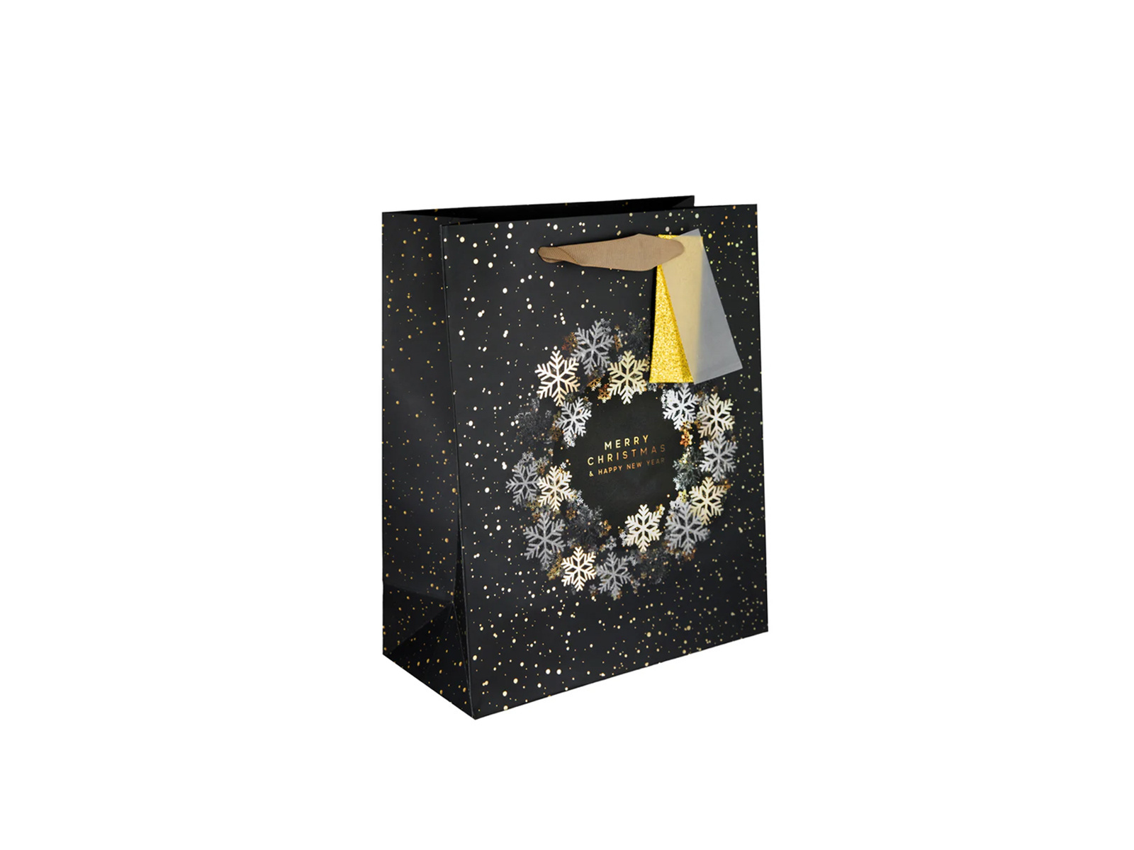 Torebka prezentowa Śnieżynki czarna średnia - 1 szt.