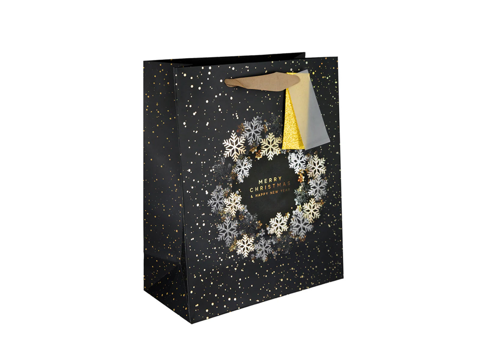 Torebka prezentowa Śnieżynki czarna duża - 1 szt.