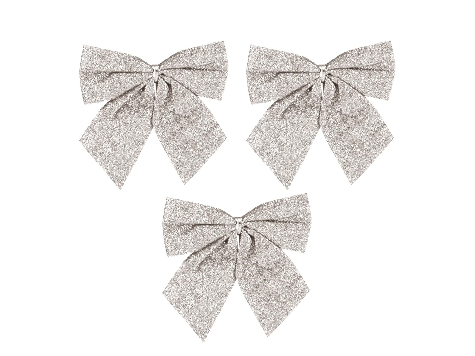 Kokardy srebrne brokatowe - 12 cm - 3 szt.