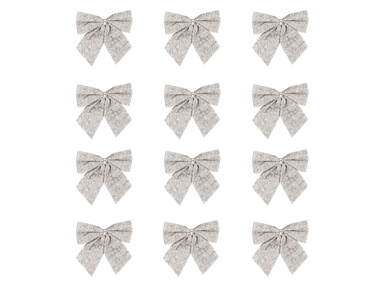 Kokardy srebrne brokatowe - 5 cm - 12 szt.
