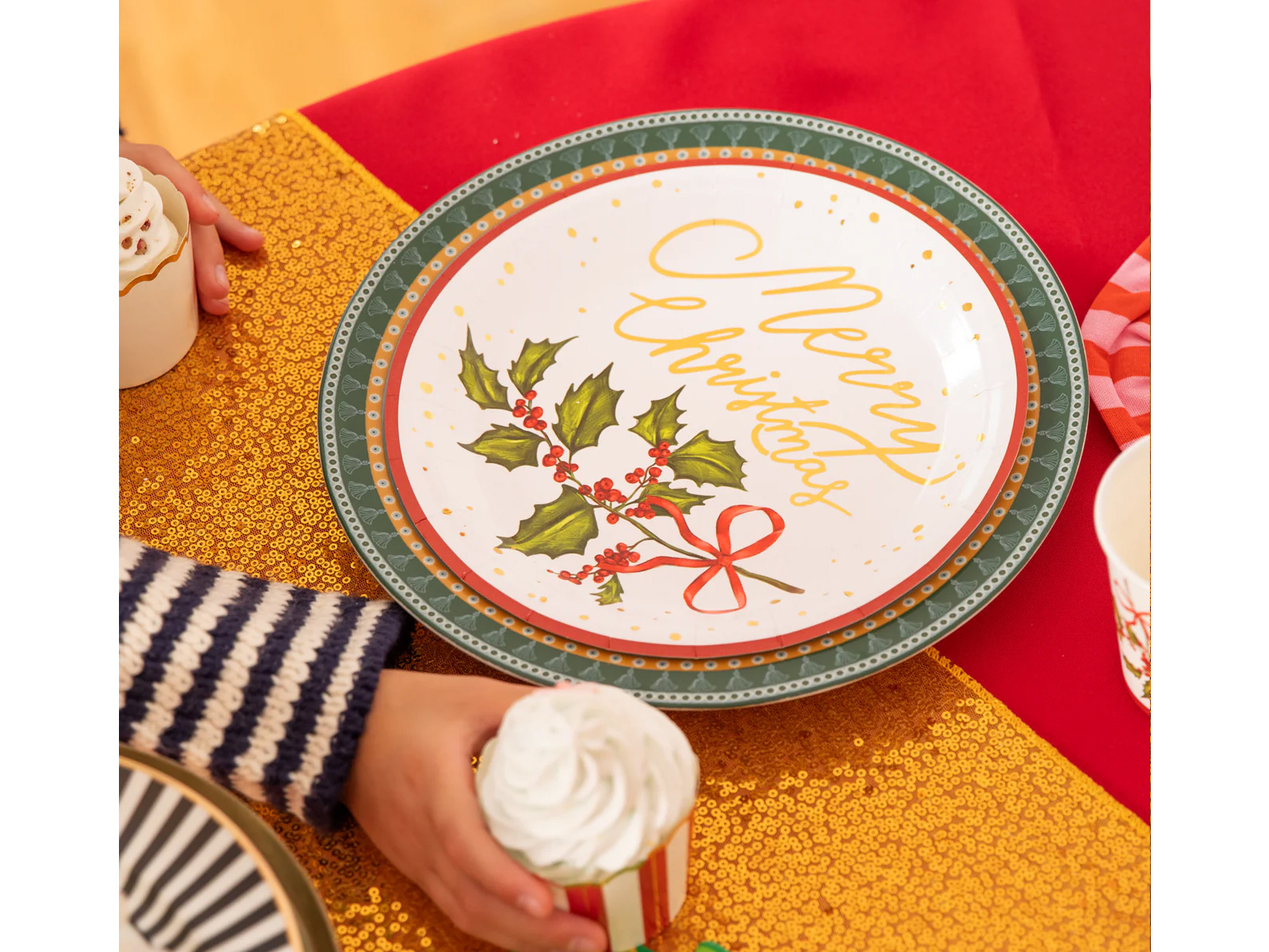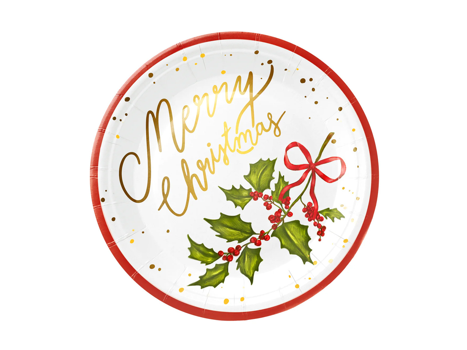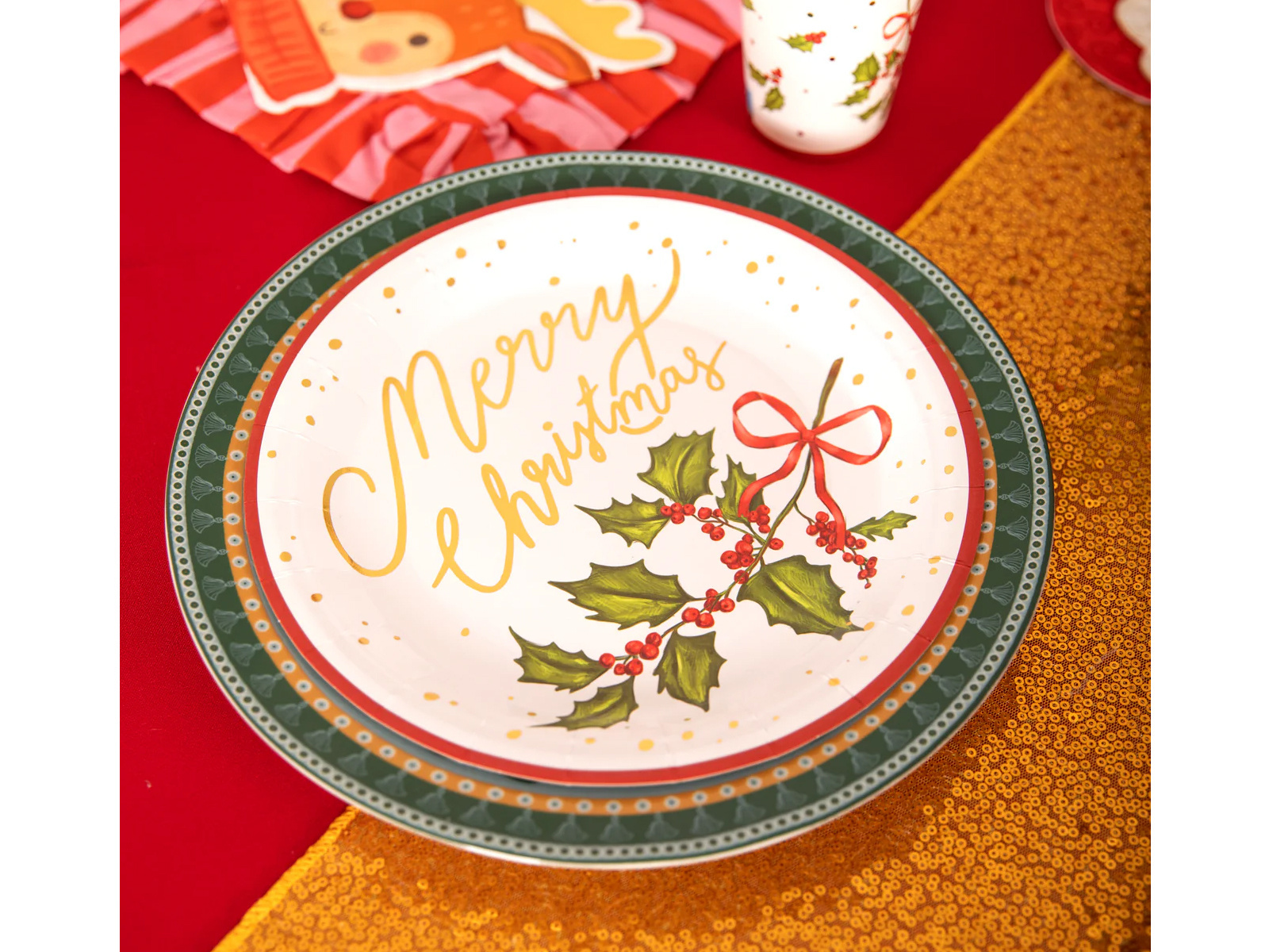 Talerzyki papierowe bożonarodzeniowe Ostrokrzew - 22,8 cm - 10 szt.