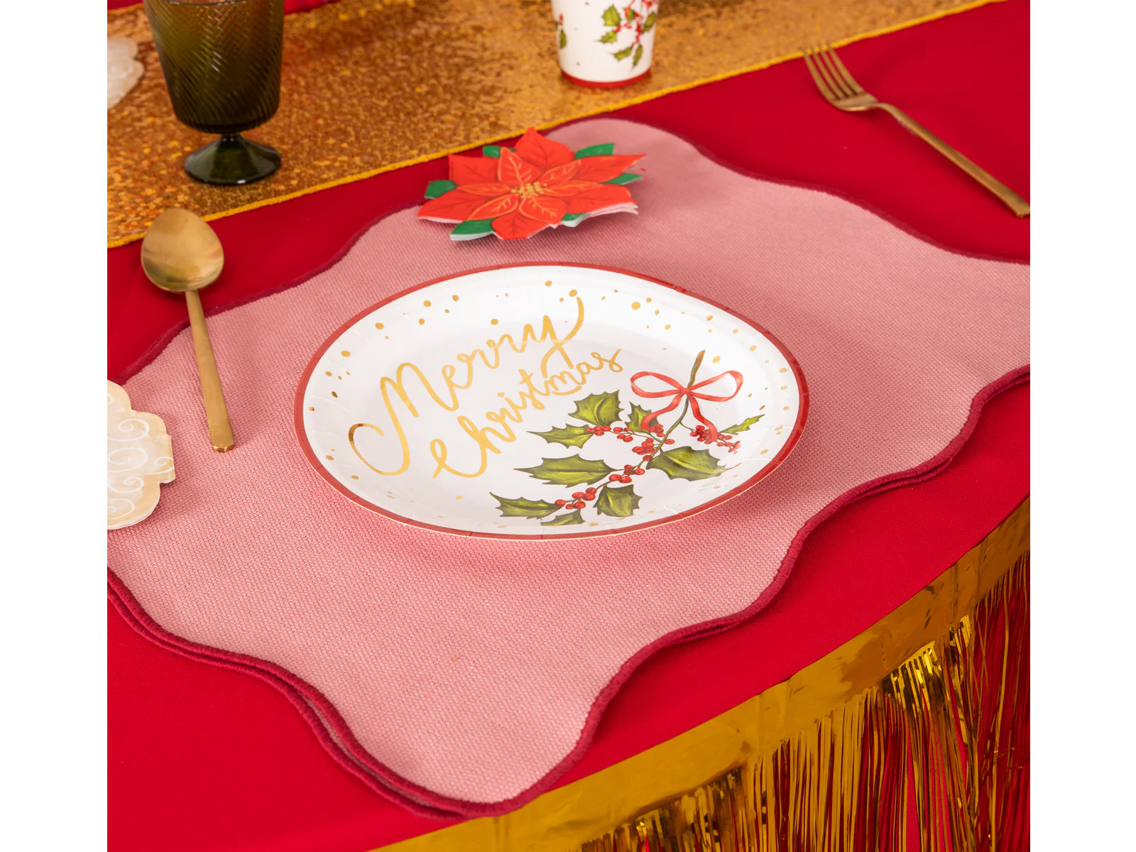 Te eleganckie, papierowe talerzyki z serii Ostrokrzew to idealne rozwiązanie na świąteczny stół. Każdy talerzyk zdobi delikatny nadruk gałązki ostrokrzewu oraz złoty napis Merry Christmas, co dodaje uroku każdemu świątecznemu przyjęciu. Mając średnicę 22,8 cm, są doskonałe do serwowania zarówno ciepłych, jak i zimnych przekąsek dla Twoich gości.