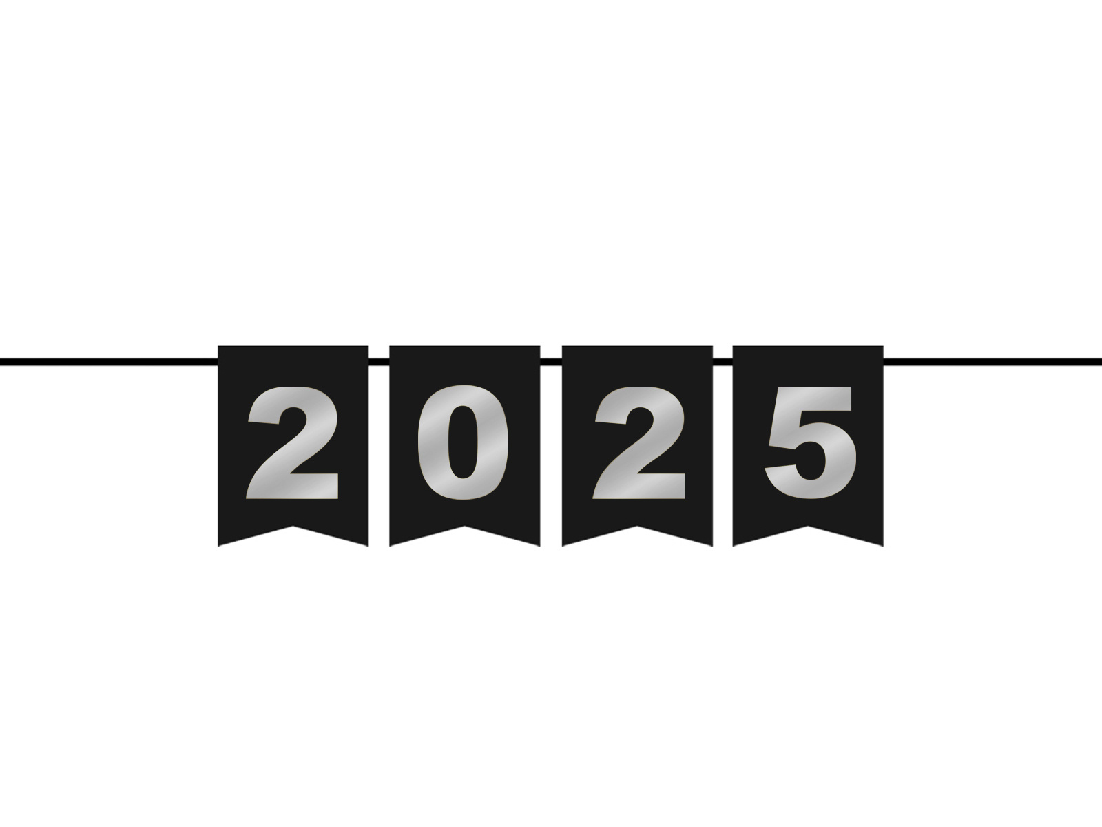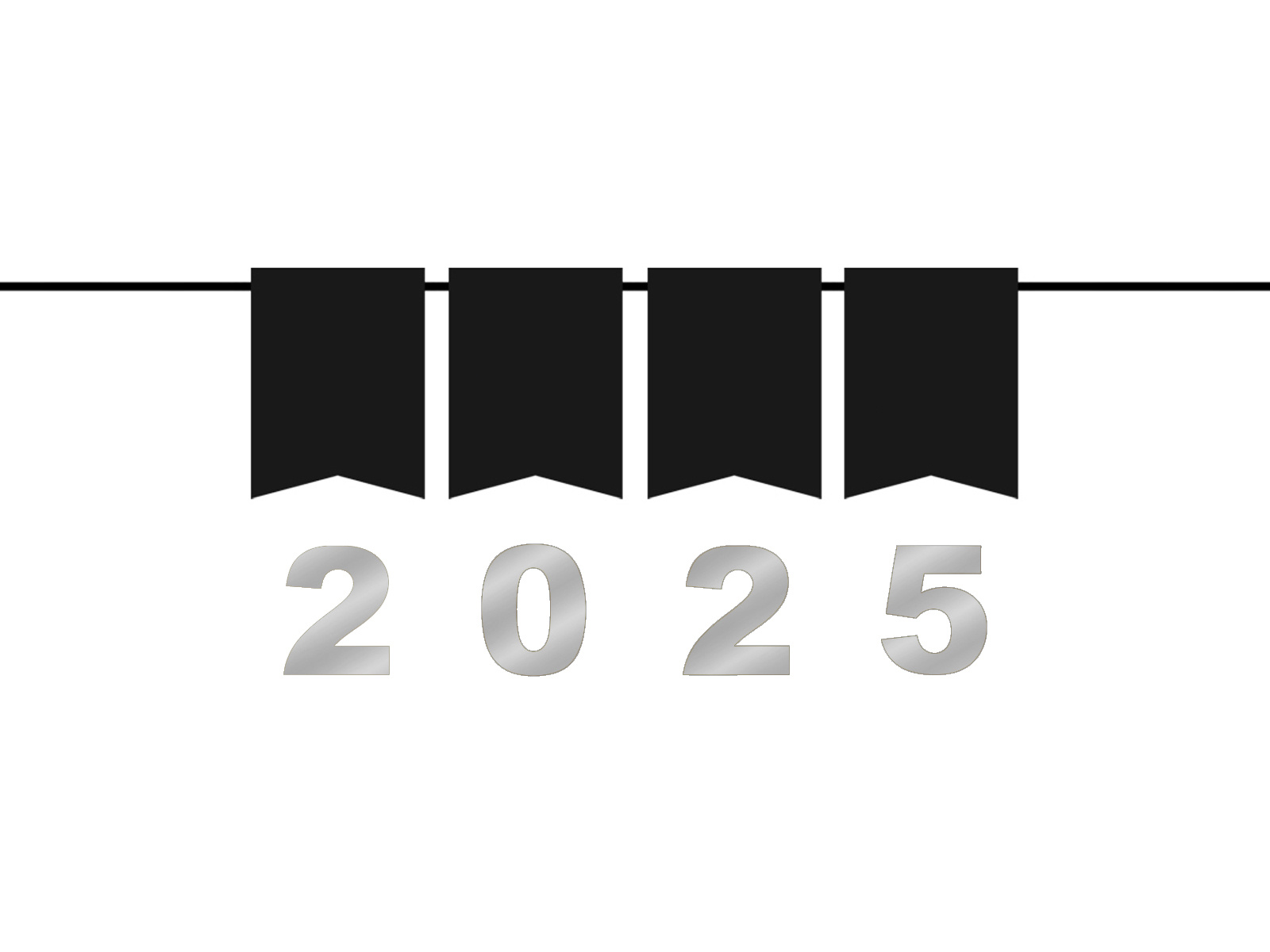 Baner sylwestrowy srebrny 2025 - 1 szt.