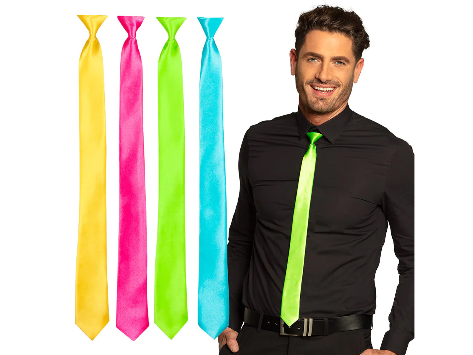 Przenieś się do świata błyszczących imprez z naszym krawatem w neonowych kolorach. Dostępny w odcieniach żółtym, różowym, zielonym i niebieskim, kolor wysyłany jest losowo, zapewniając niespodziankę przy każdym zamówieniu. Ten efektowny dodatek doskonale sprawdzi się na każdą karnawałową zabawę, wieczór panieński, kawalerski czy inne tematyczne przyjęcia.