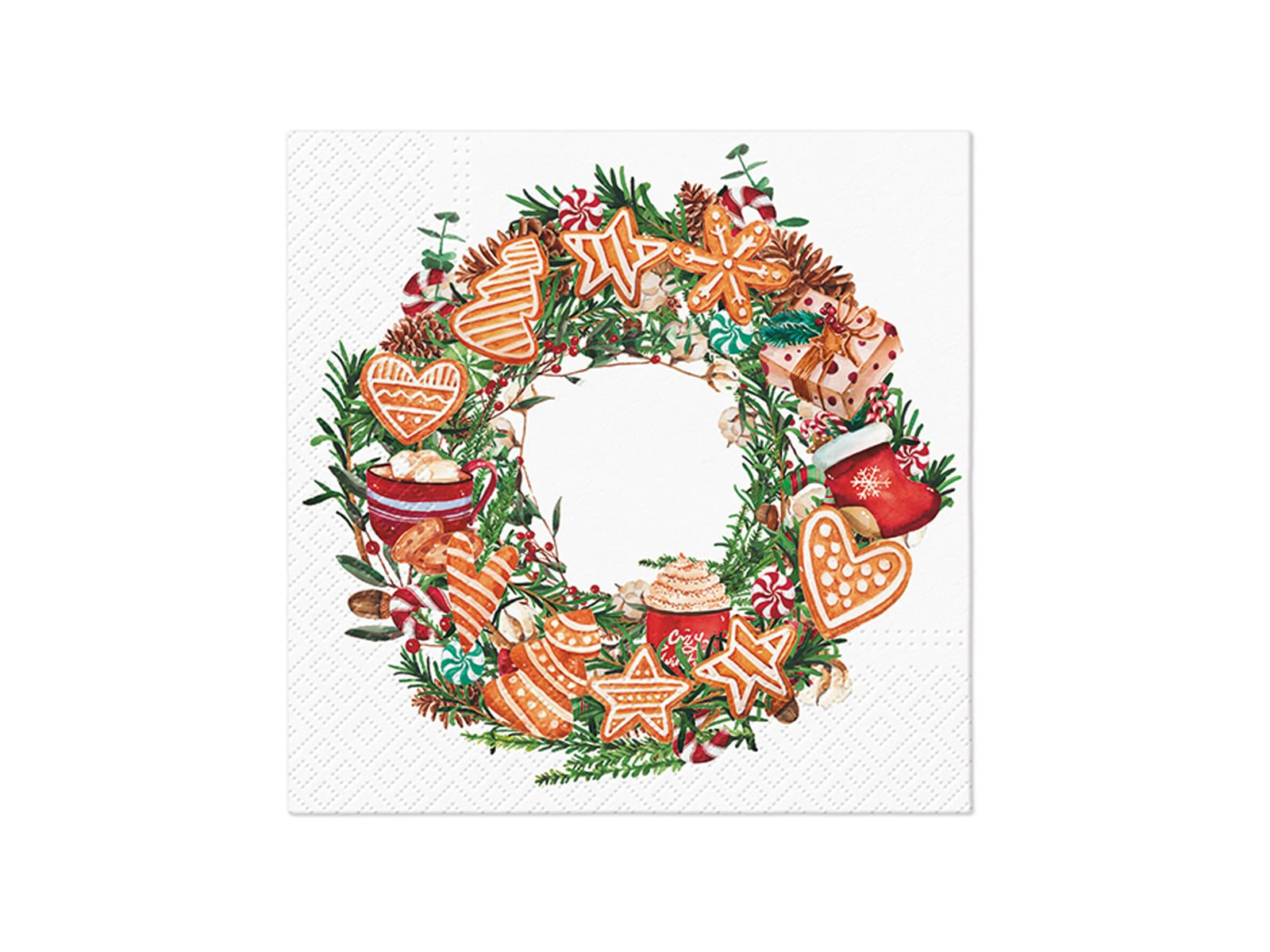 Serwetki bożonarodzeniowe Wieniec z pierniczkami - 33 cm - 20 szt.