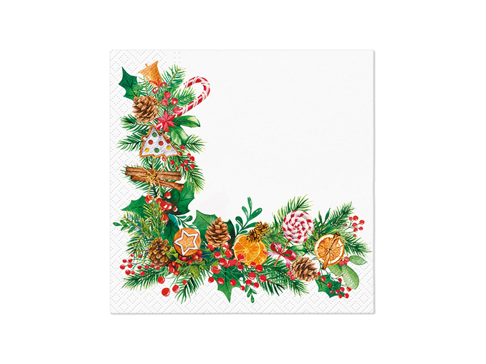 Serwetki bożonarodzeniowe Świąteczna ramka z pomarańczą - 33 cm - 20 szt.
