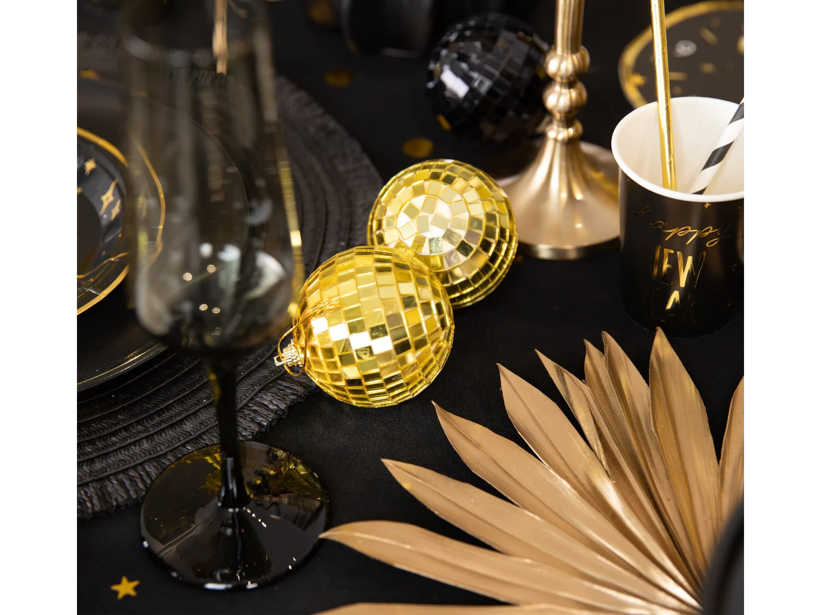 Kule dyskotekowe złote i czarne lustrzane - 7 cm - 6 szt.