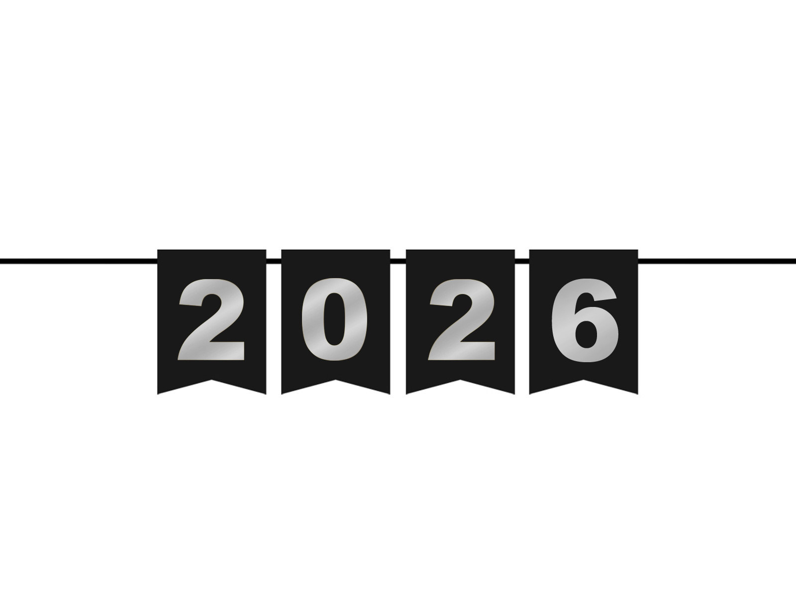 Baner sylwestrowy srebrny 2026 - 1 szt.