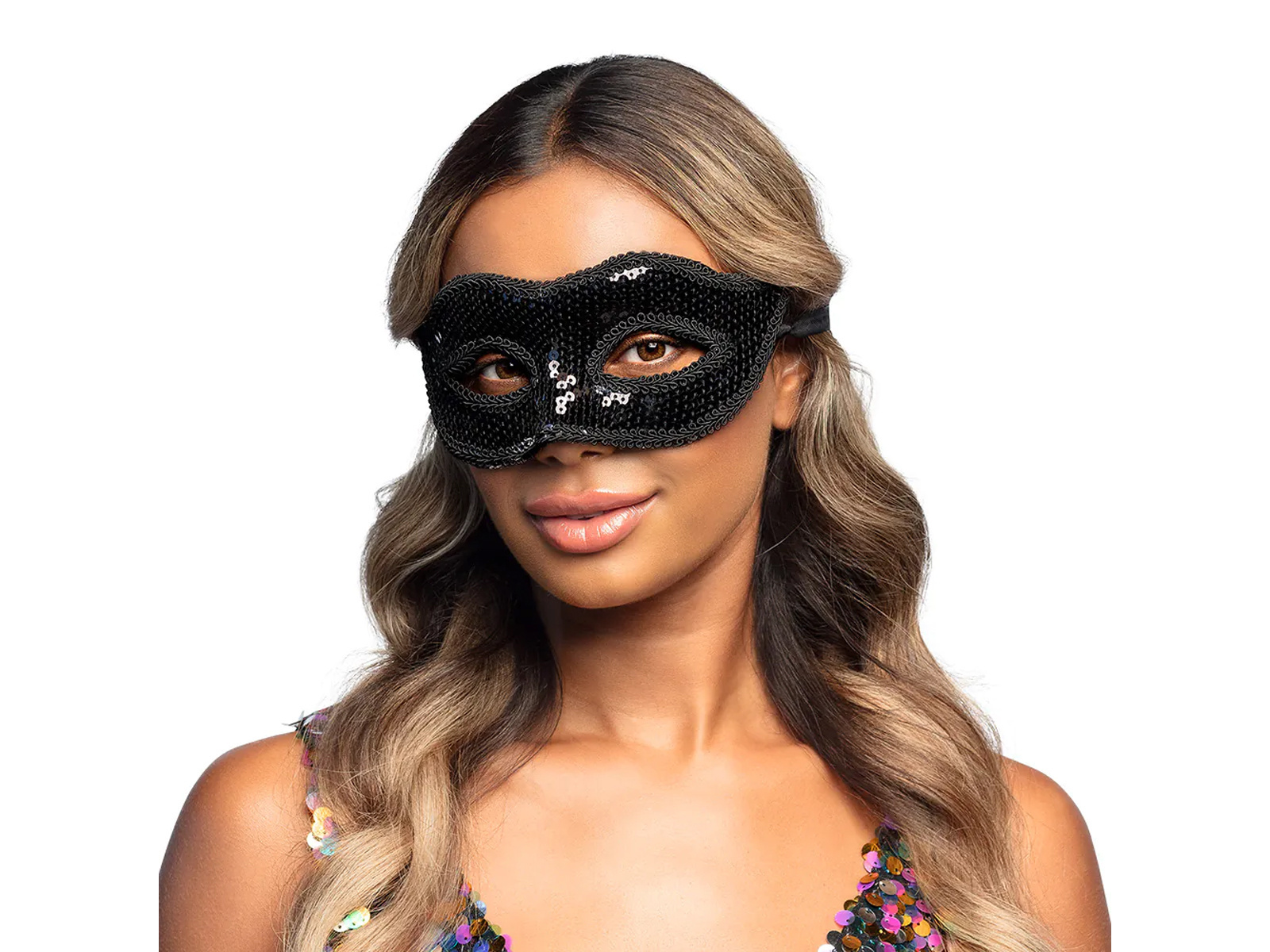 Maska karnawałowa czarna z cekinami - 1 szt.