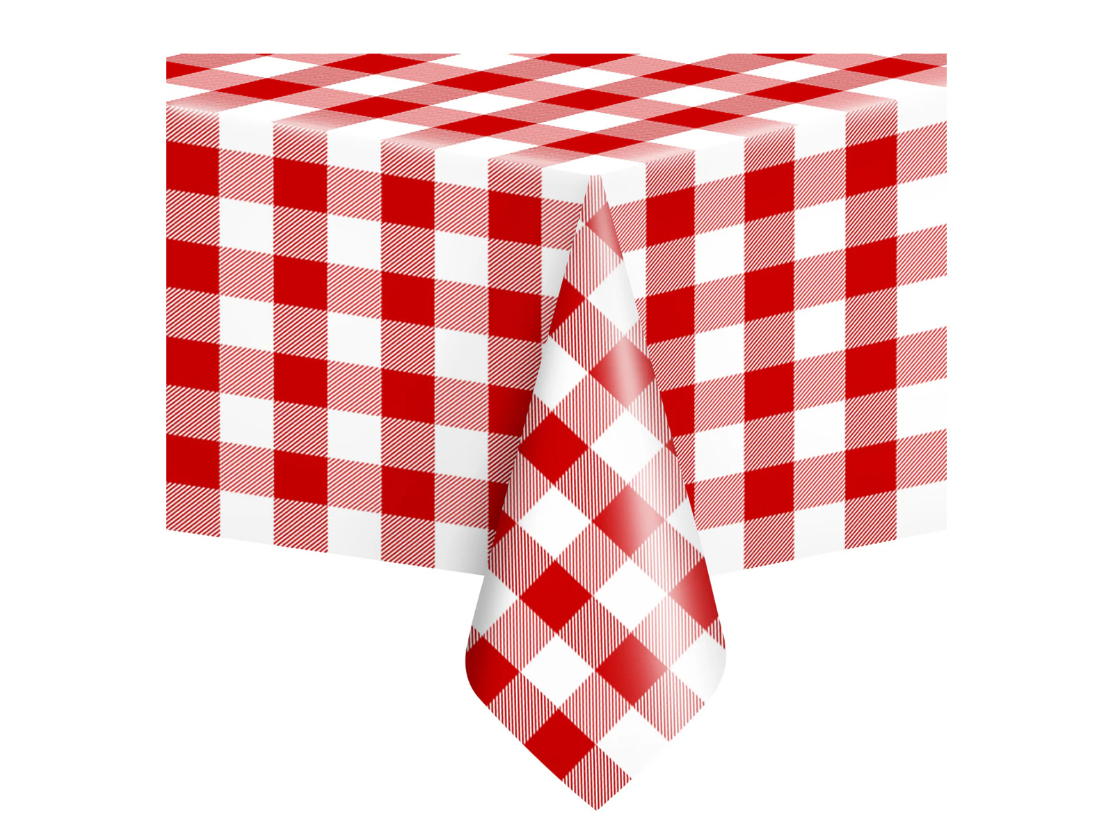 Obrus foliowy w biało-czerwoną kratkę - 137 x 274 cm - 1 szt.