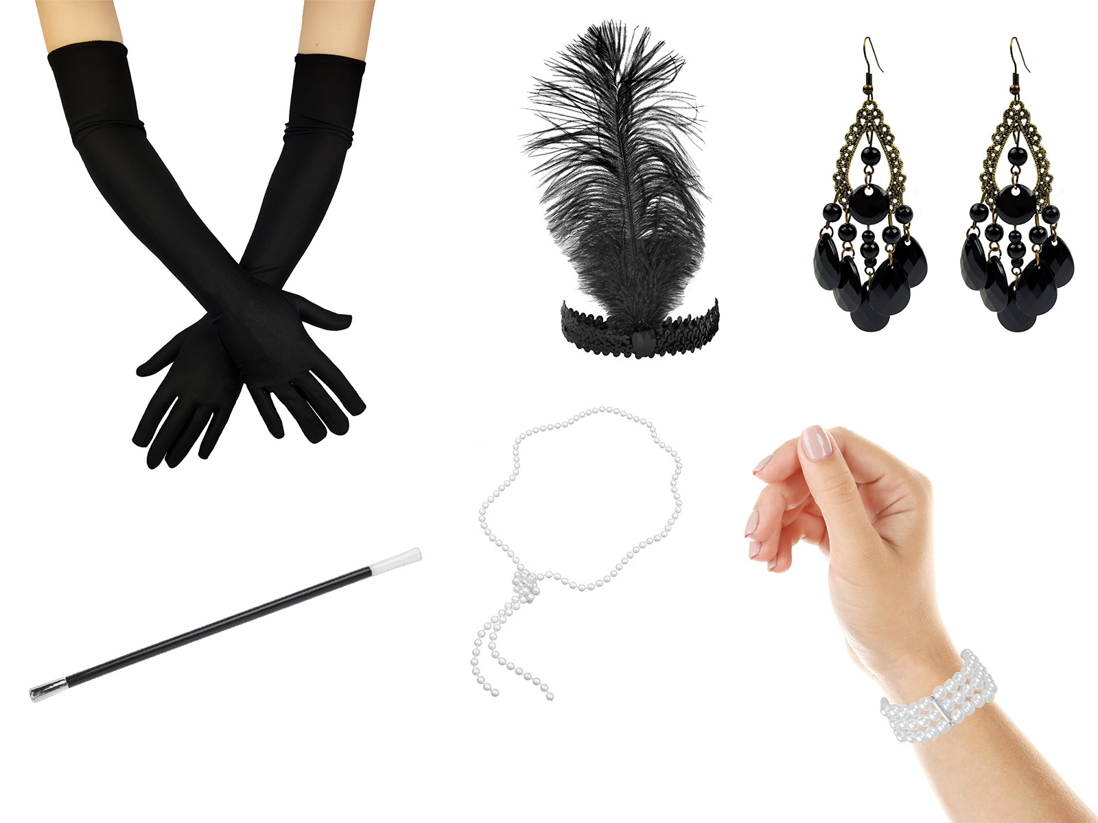 - czarne wieczorowe rękawiczki,