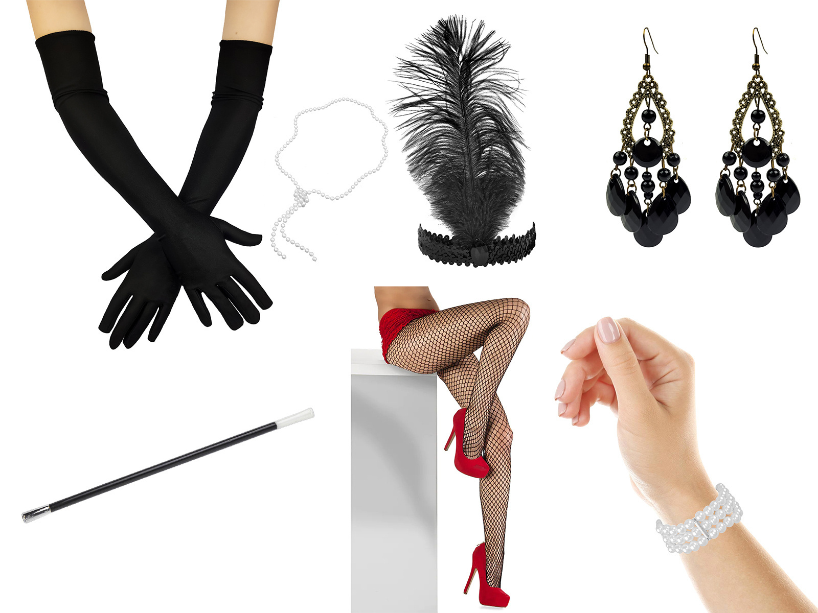 - czarna opaska na głowę z piórami oraz kamykiem,